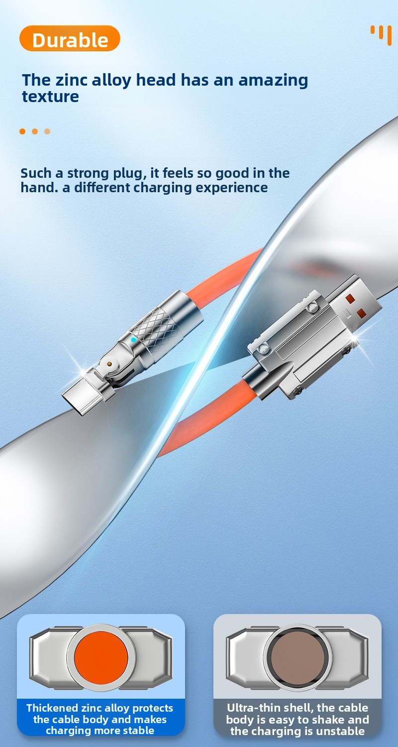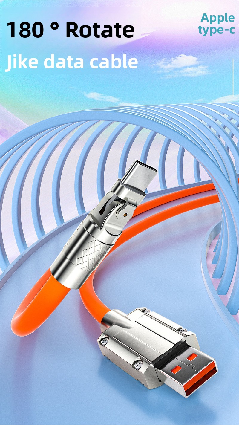 A180 degree rotating elbow zinc alloy fast charging data cable charging cable