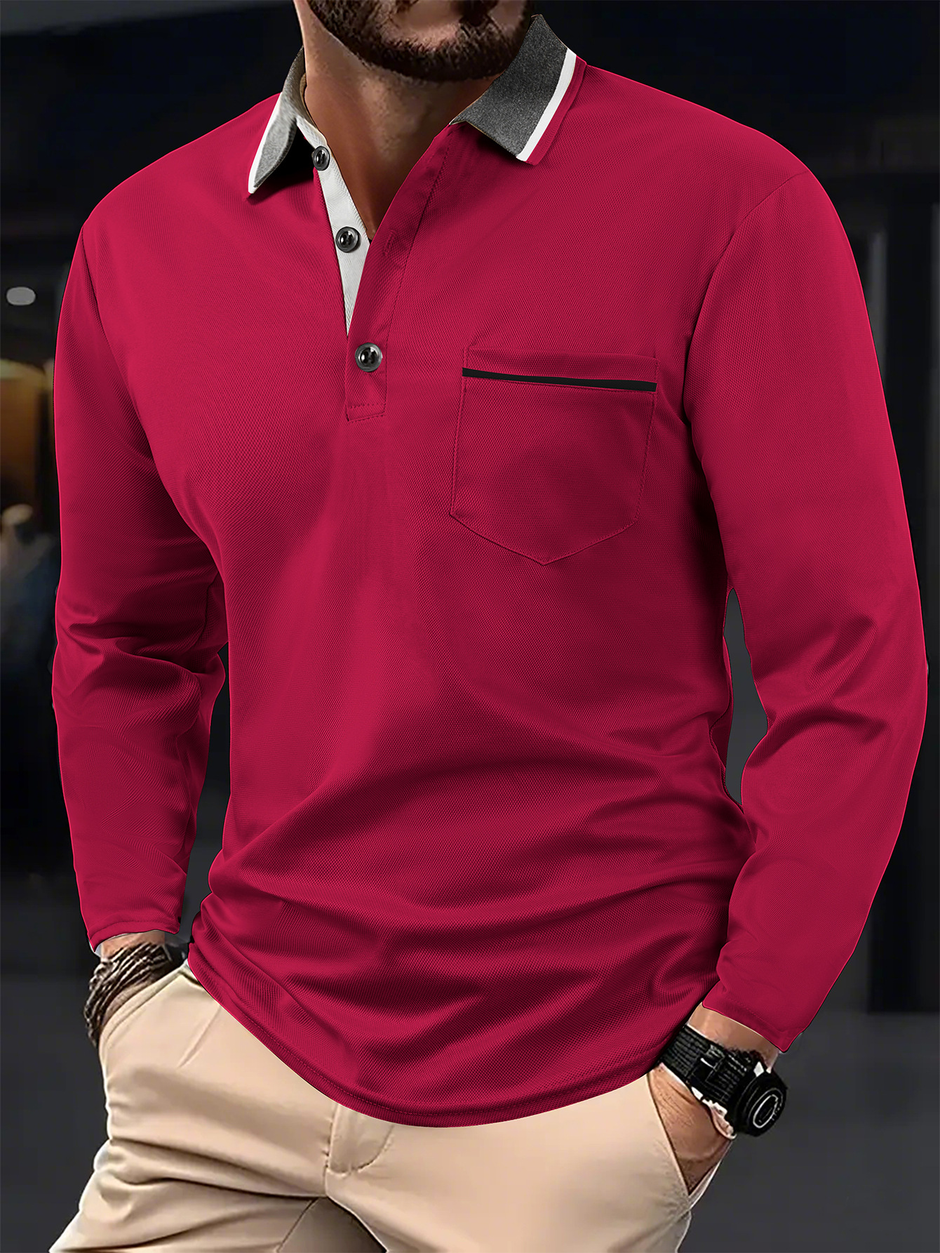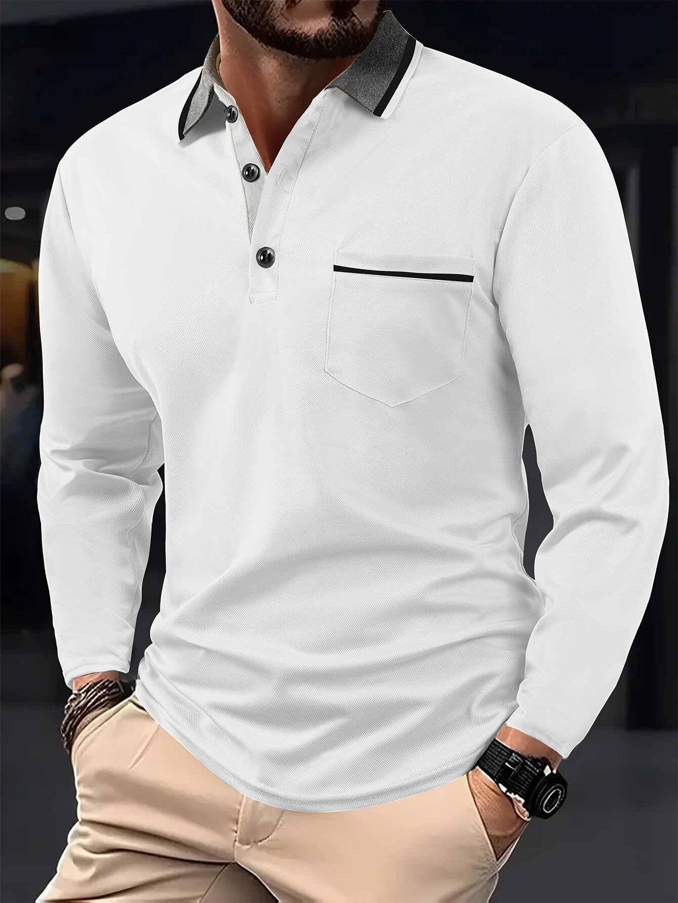 A European and American cross-border men's polo shirt fashion lapel golf wear men's sports long-sleeved POLO shirt wholesale