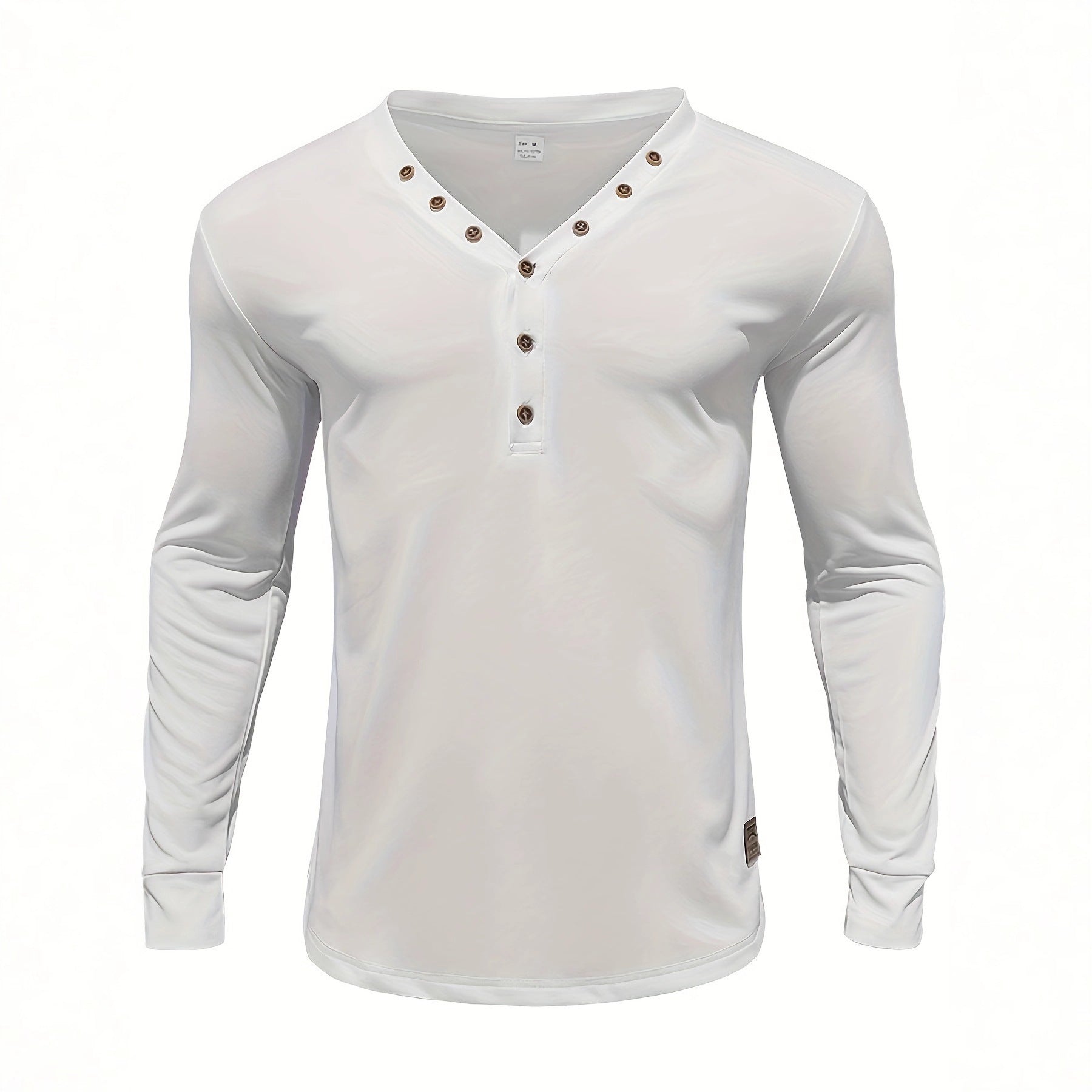 A Men's Spring and Autumn American Solid Color Men's T-Shirt Long Sleeve Casual Bottom Slim Button V-Neck Top