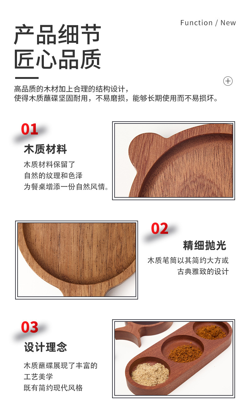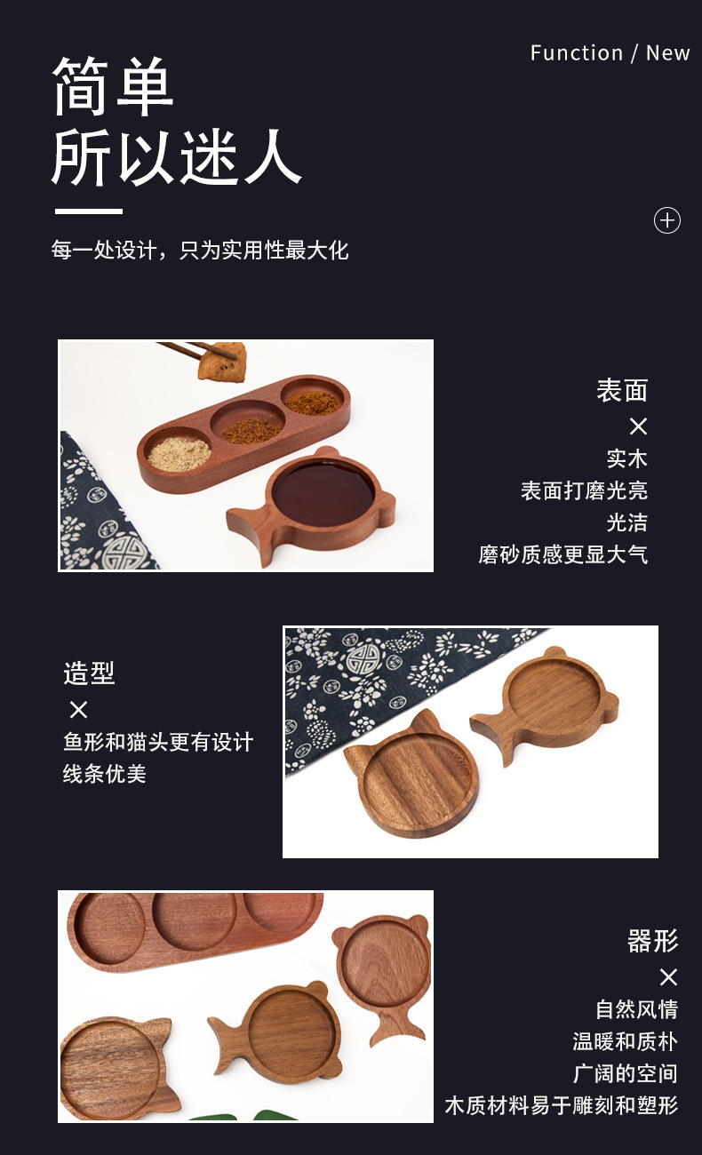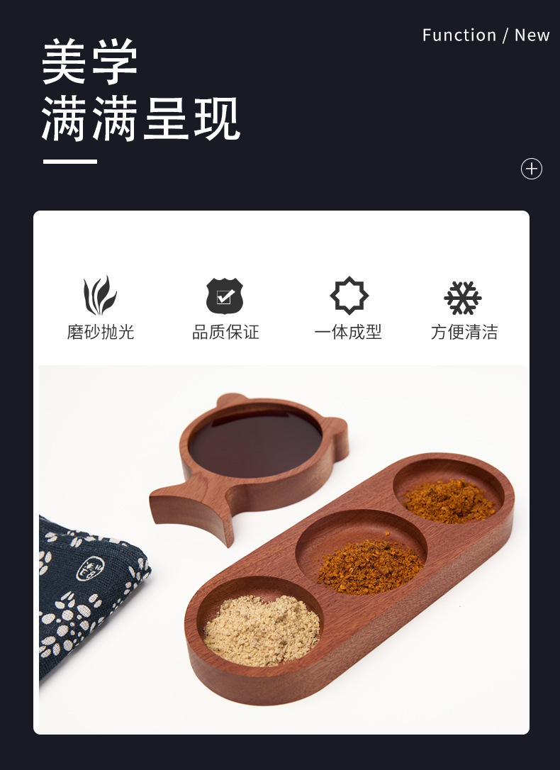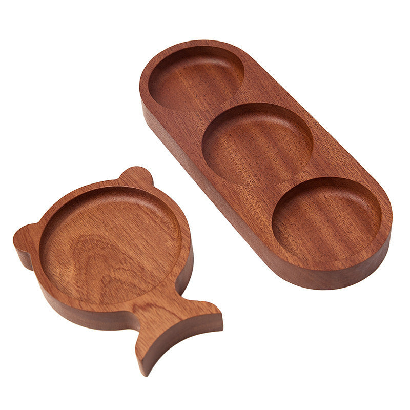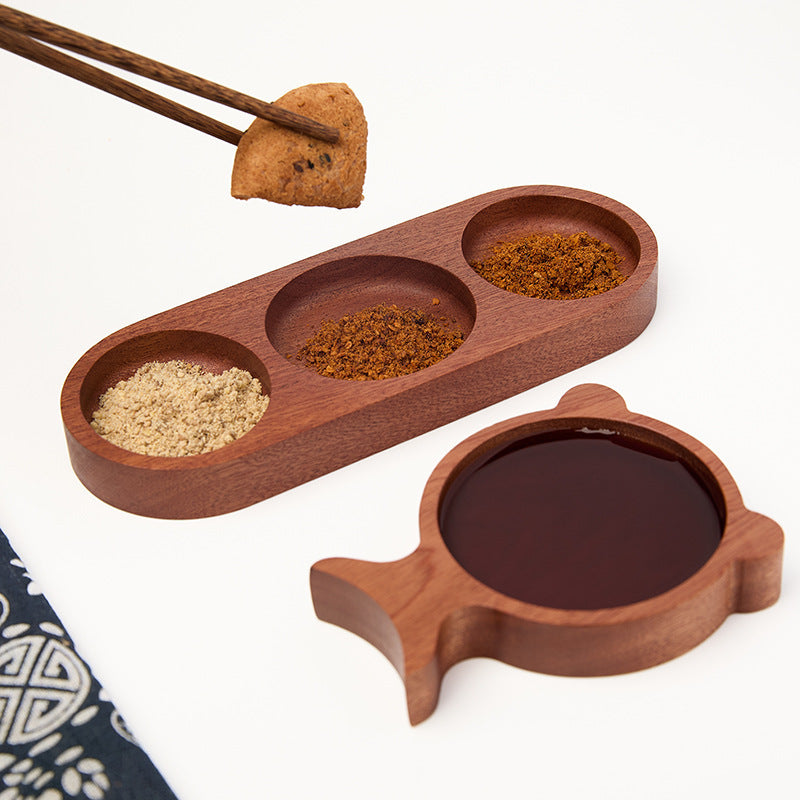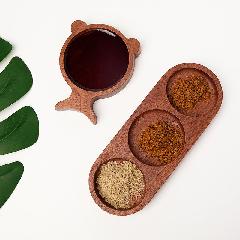 طبق تذوق من خشب السنط، ثلاثة أقسام، طبق تذوق على شكل ذيل سمكة