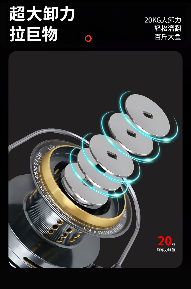 عجلة صيد دوارة معدنية بالكامل (20 كجم سمكة)