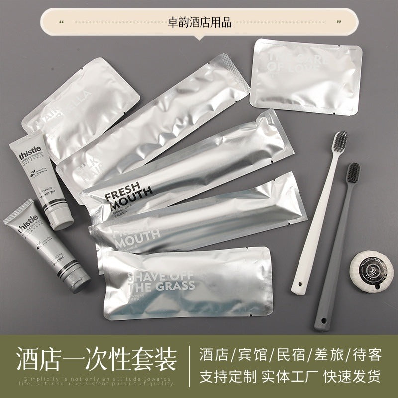 مجموعة أدوات النظافة الشخصية الفندقية للاستخدام مرة واحدة، حقيبة من غشاء الألومنيوم