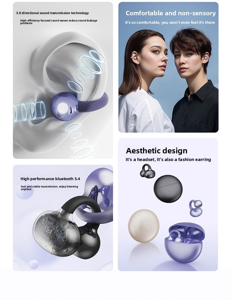 A Bluetooth headset ear clip type wireless bone conduction not in the ear 2025 new model officially applicable to iphone and Sony Q72