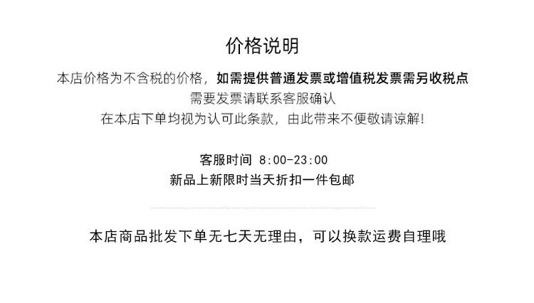 - جميع المنتجات المعروضة مبنية على الصور والروابط التي يقدمها العميل. نحن نعمل فقط كوسيط لشراء البضائع من الصين نيابةً عن العميل.