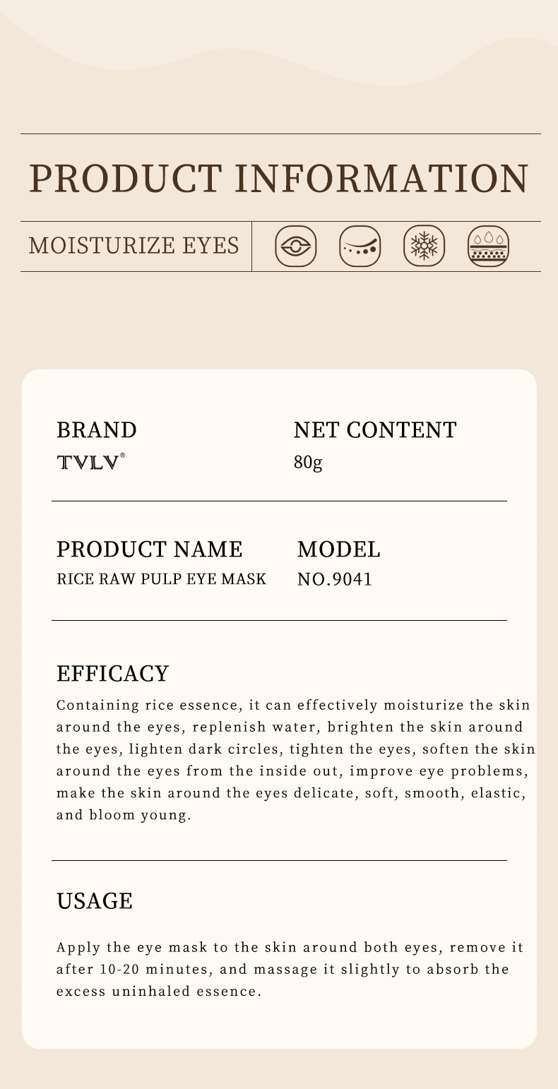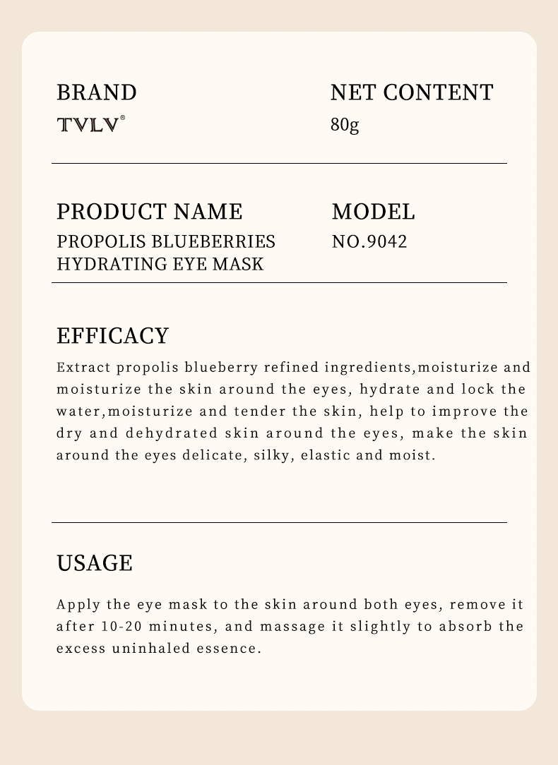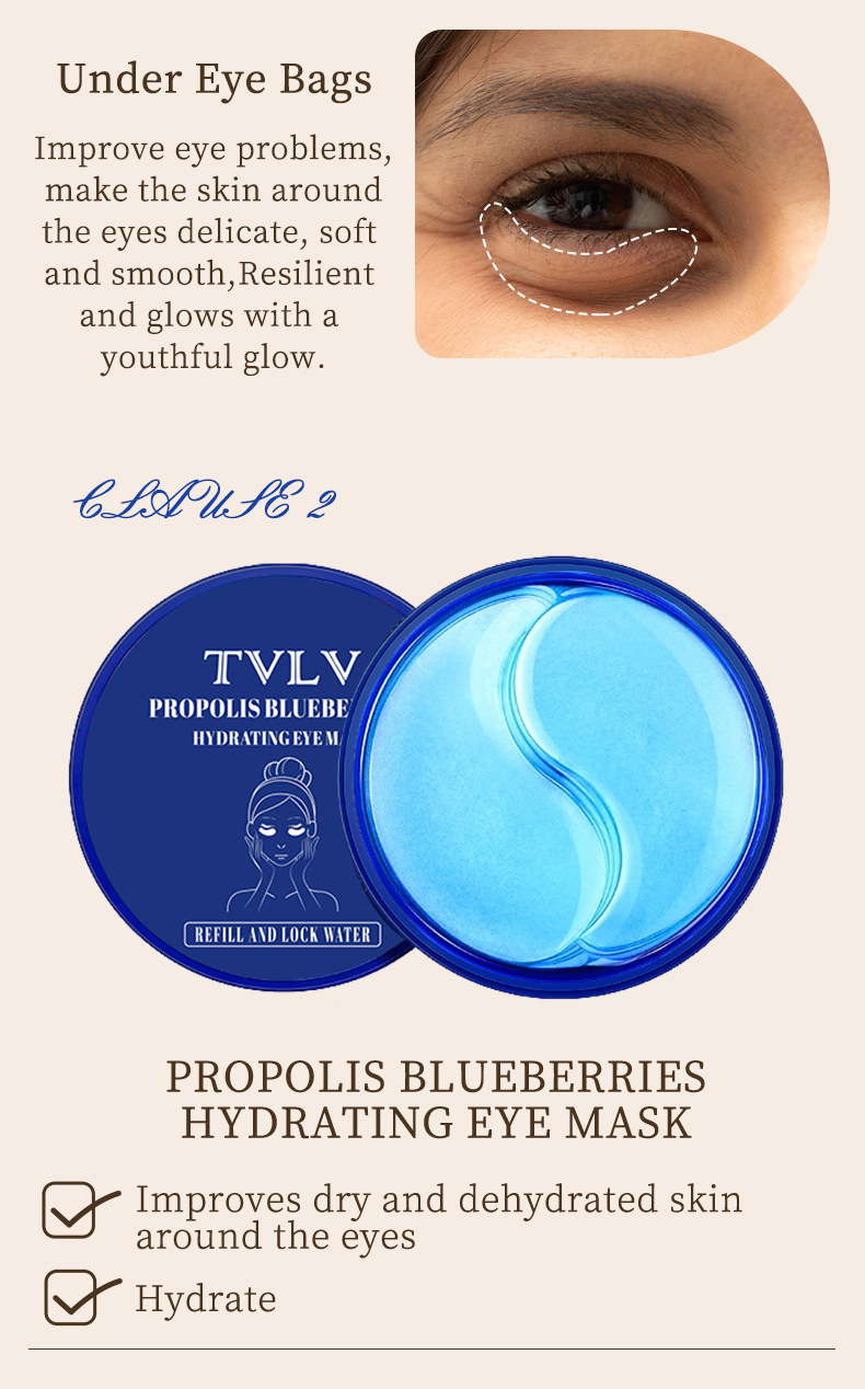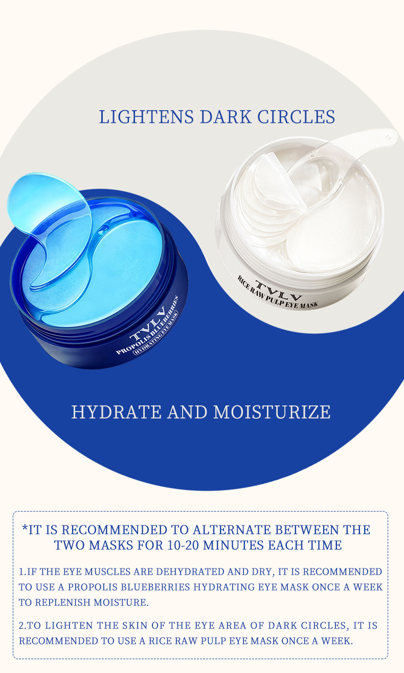 A TVLV rice puree eye mask sticker, moisturizing and brightening around the eyes, propolis blueberry water translucent and moisturizing eye mask