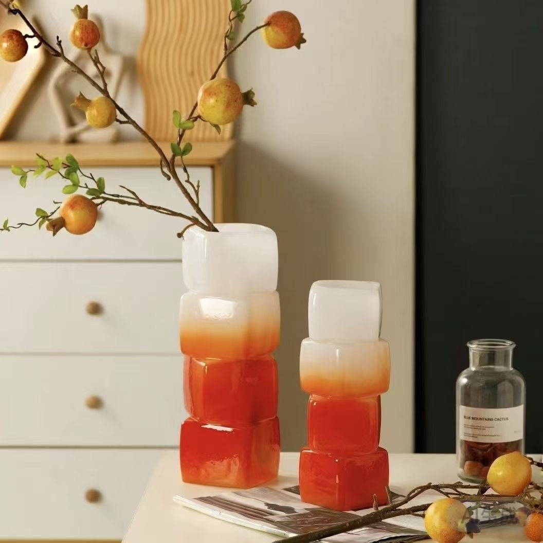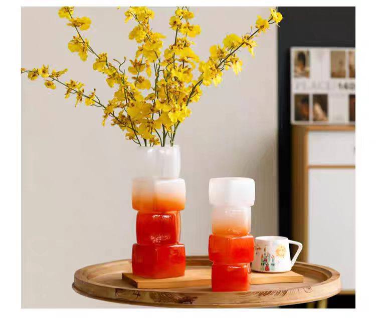 A glass advanced sense medieval creative geometric dining table decoration living room flower arrangement glass ornament