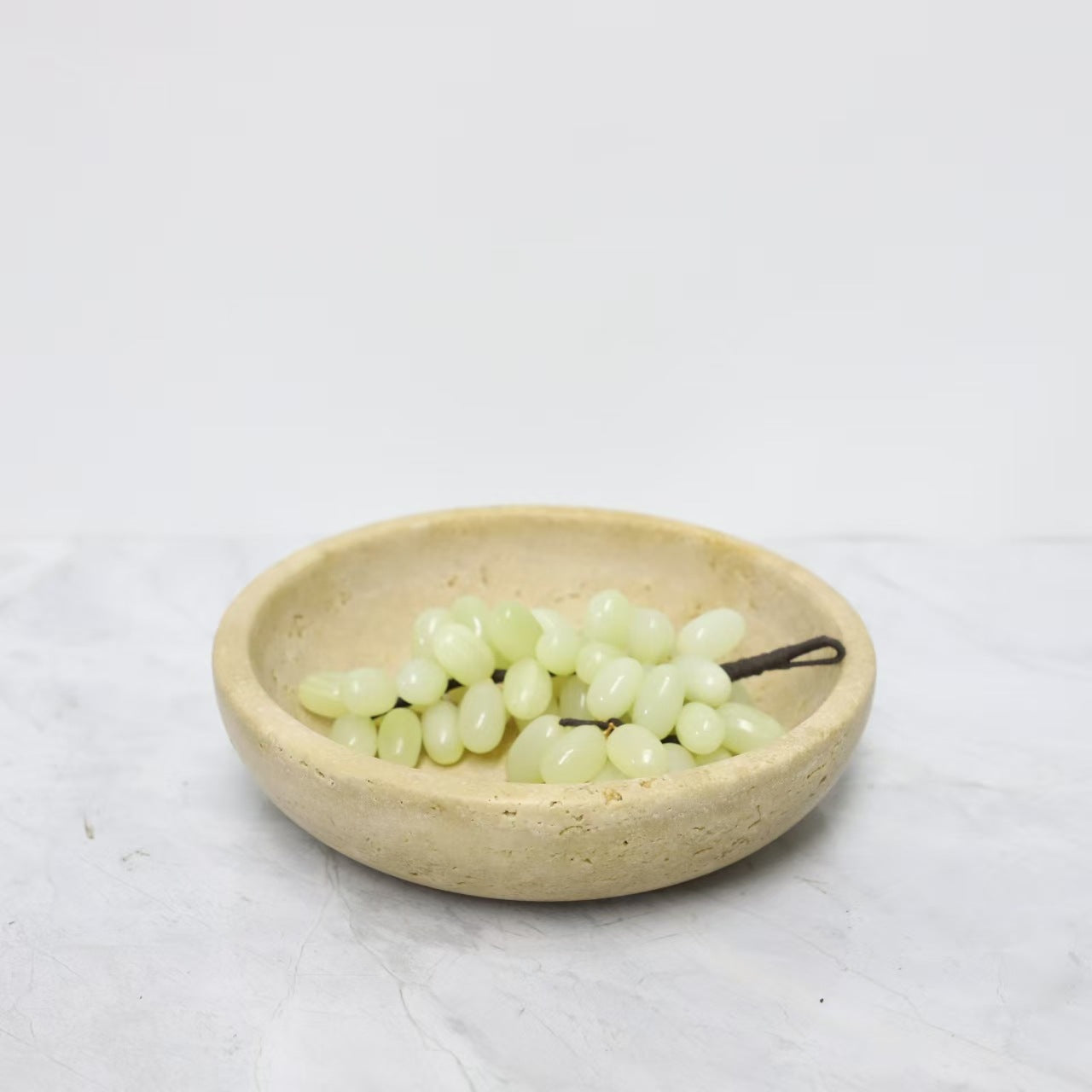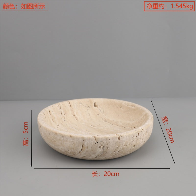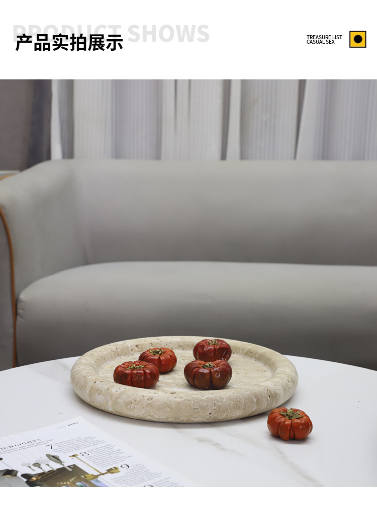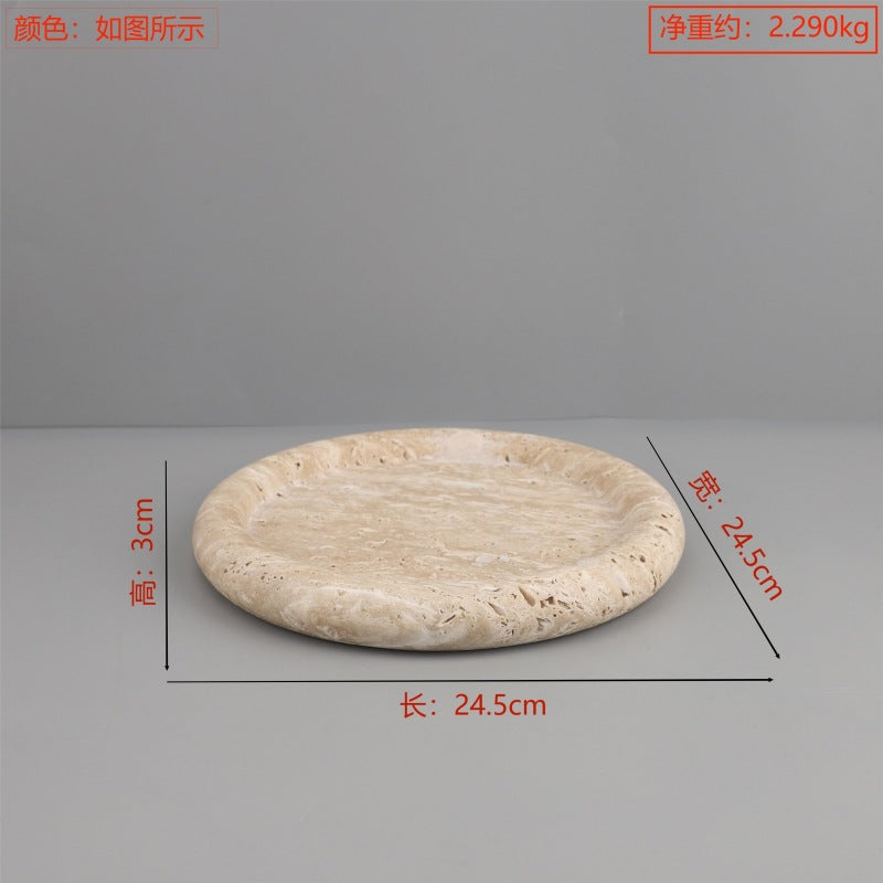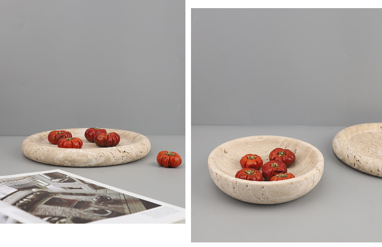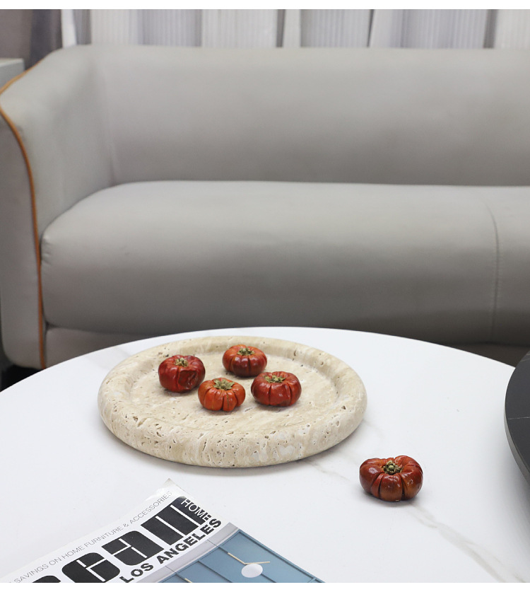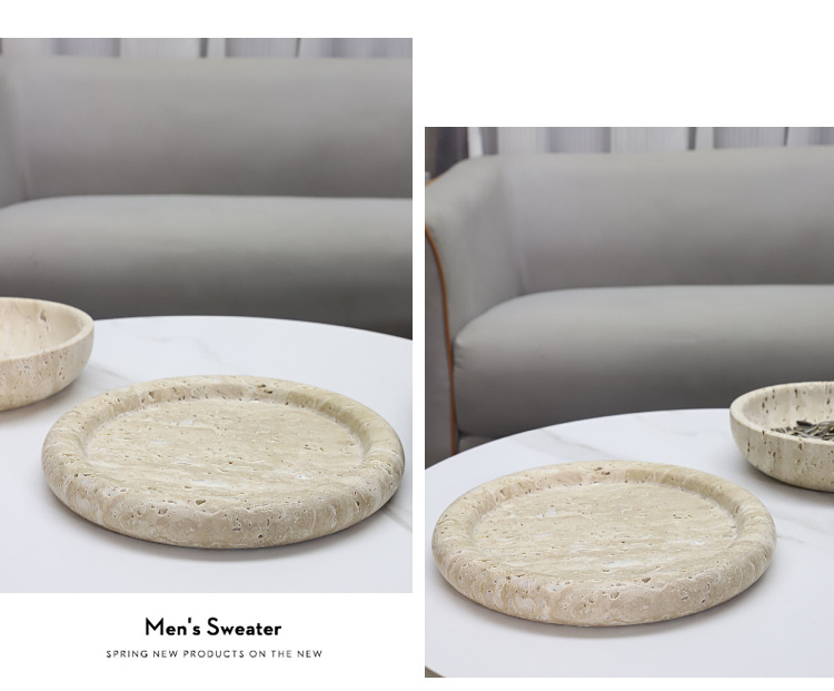 صينية زخرفية دائرية الشكل مصنوعة من رخام الترافرتين