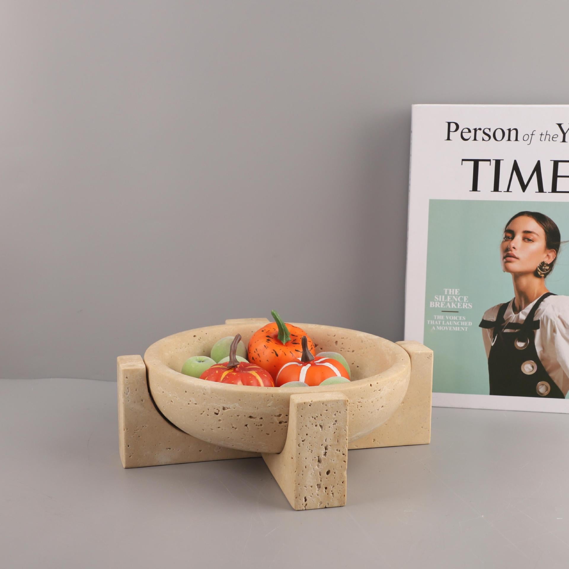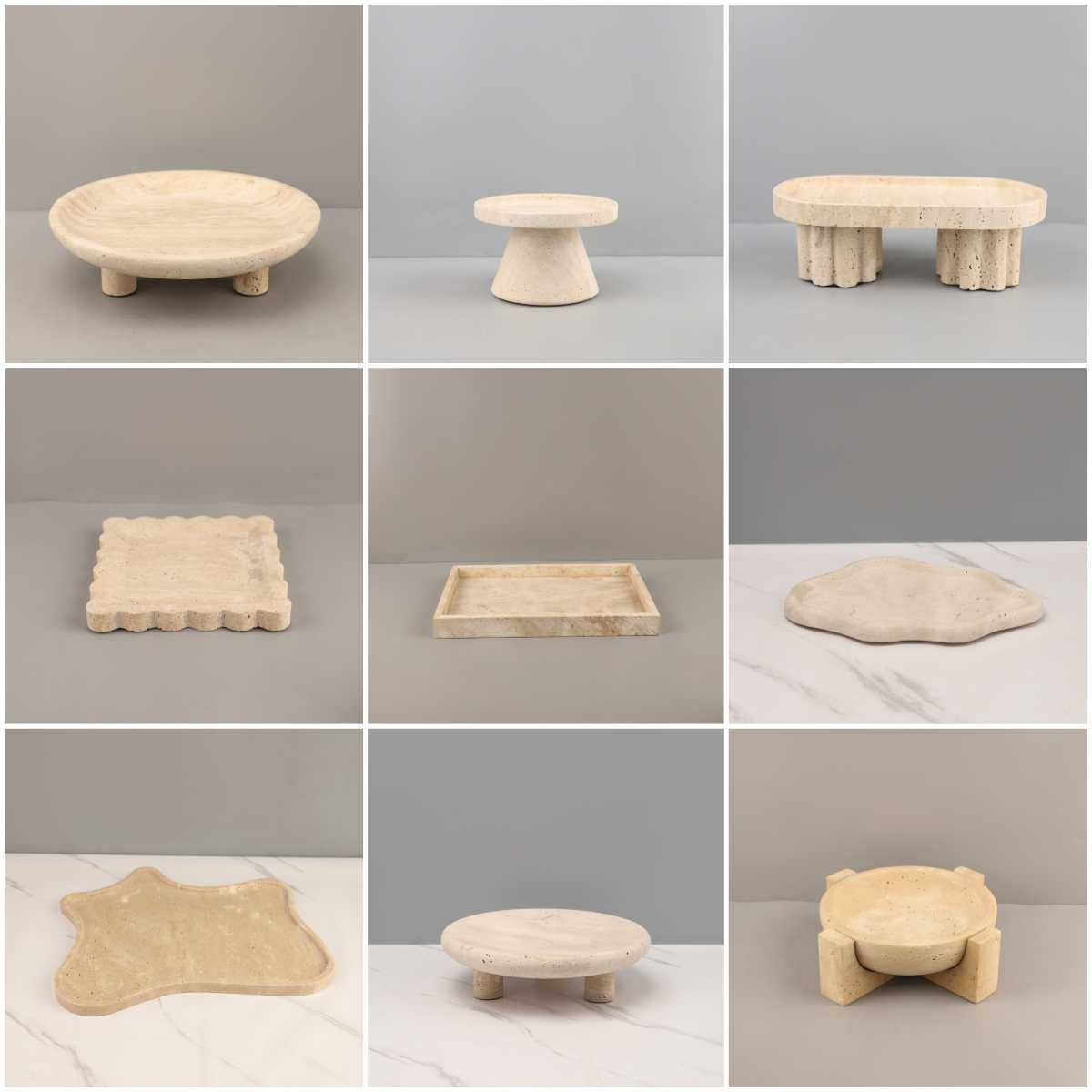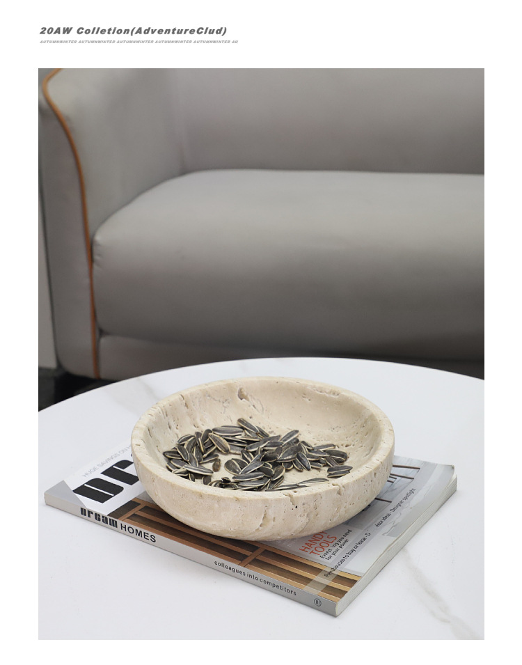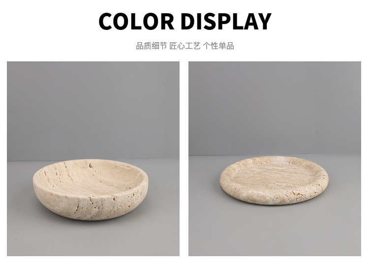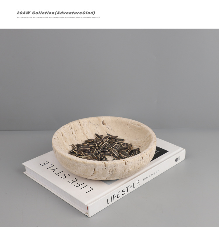 صينية زخرفية دائرية الشكل مصنوعة من رخام الترافرتين