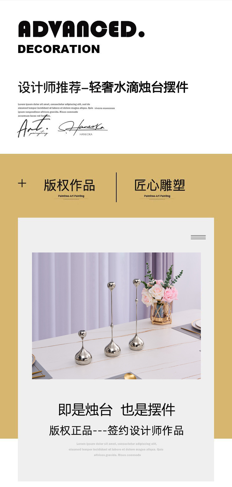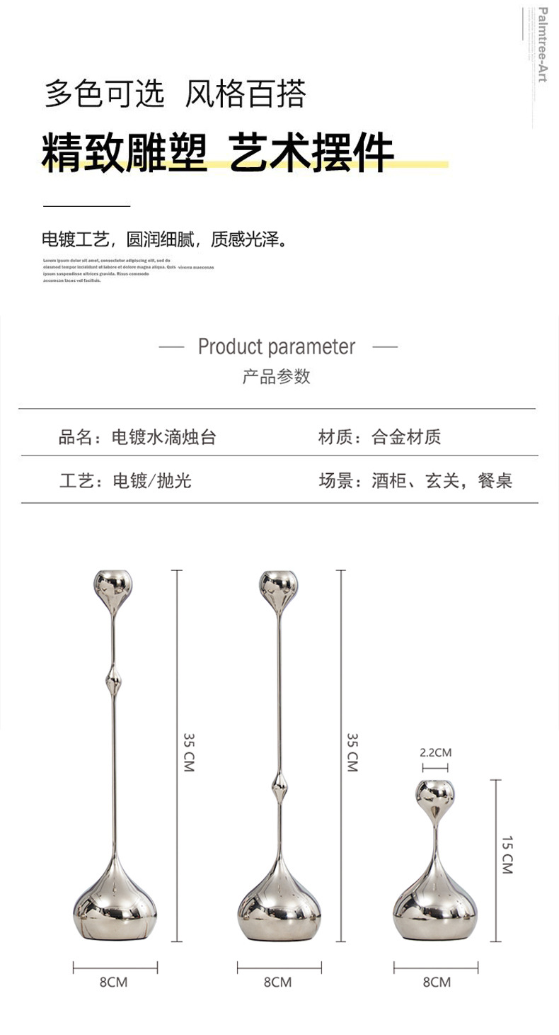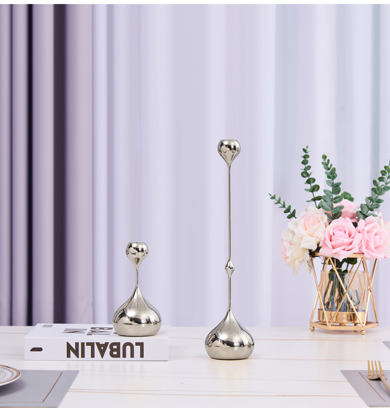 A European light luxury metal water drop silver candle table model house decoration home living room table dining room craft ornament