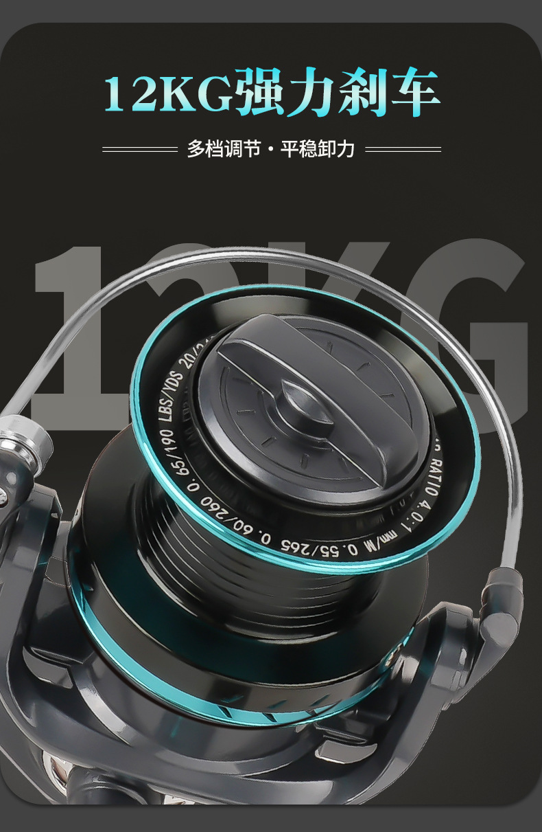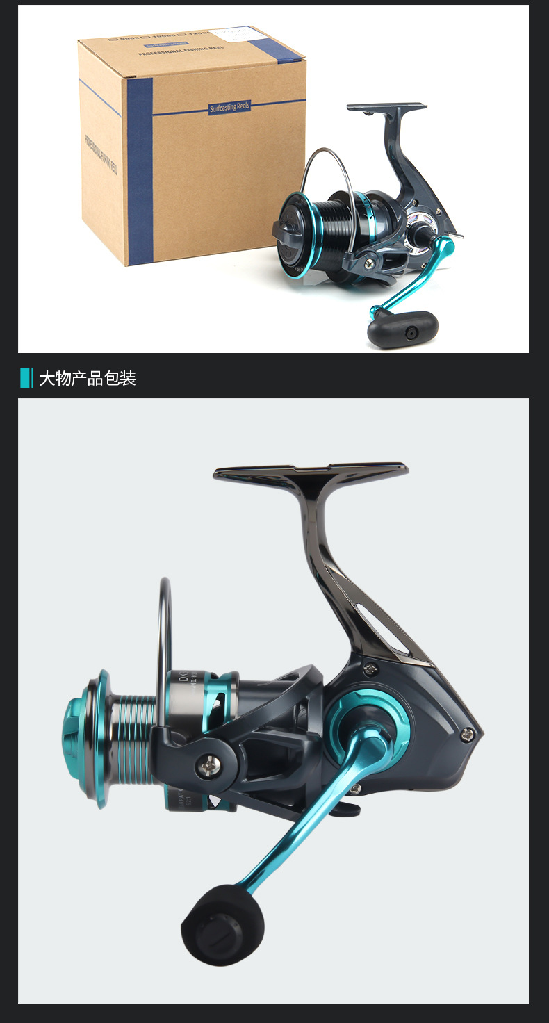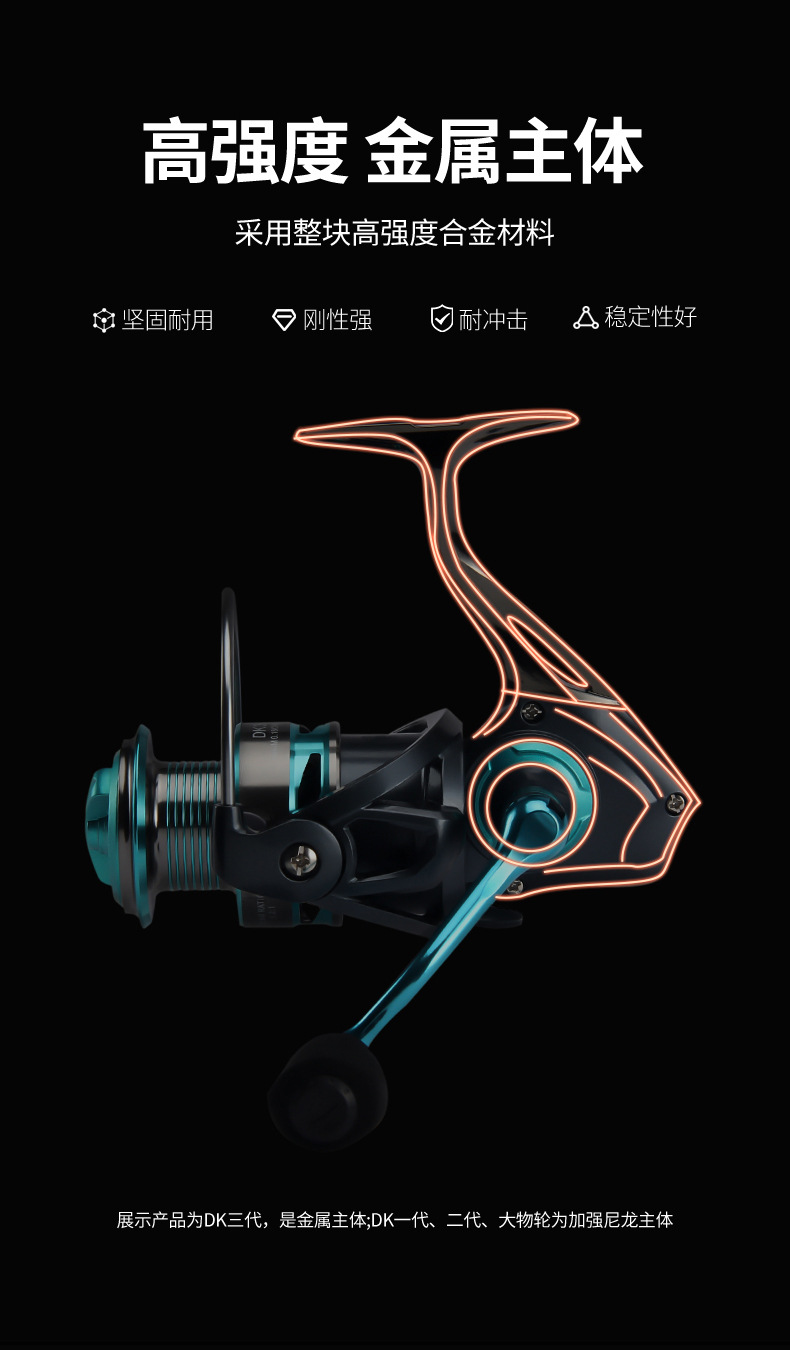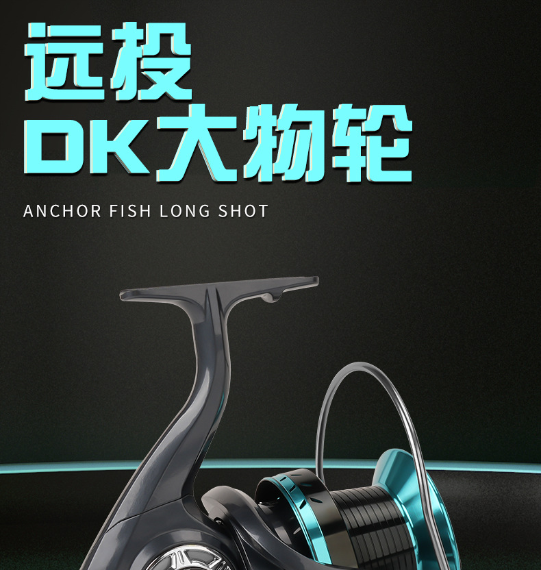 بكرة صيد معدنية سوداء بالكامل، بكرة صيد صغيرة، بكرة صيد لقصبة الصيد البحرية، بكرة صيد كبيرة DK (سمكة وزنها 16 كجم)