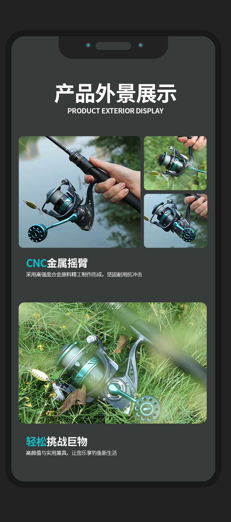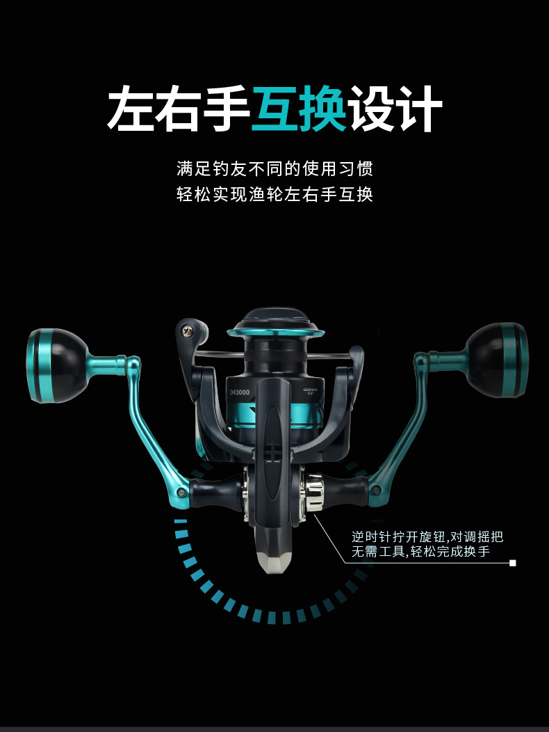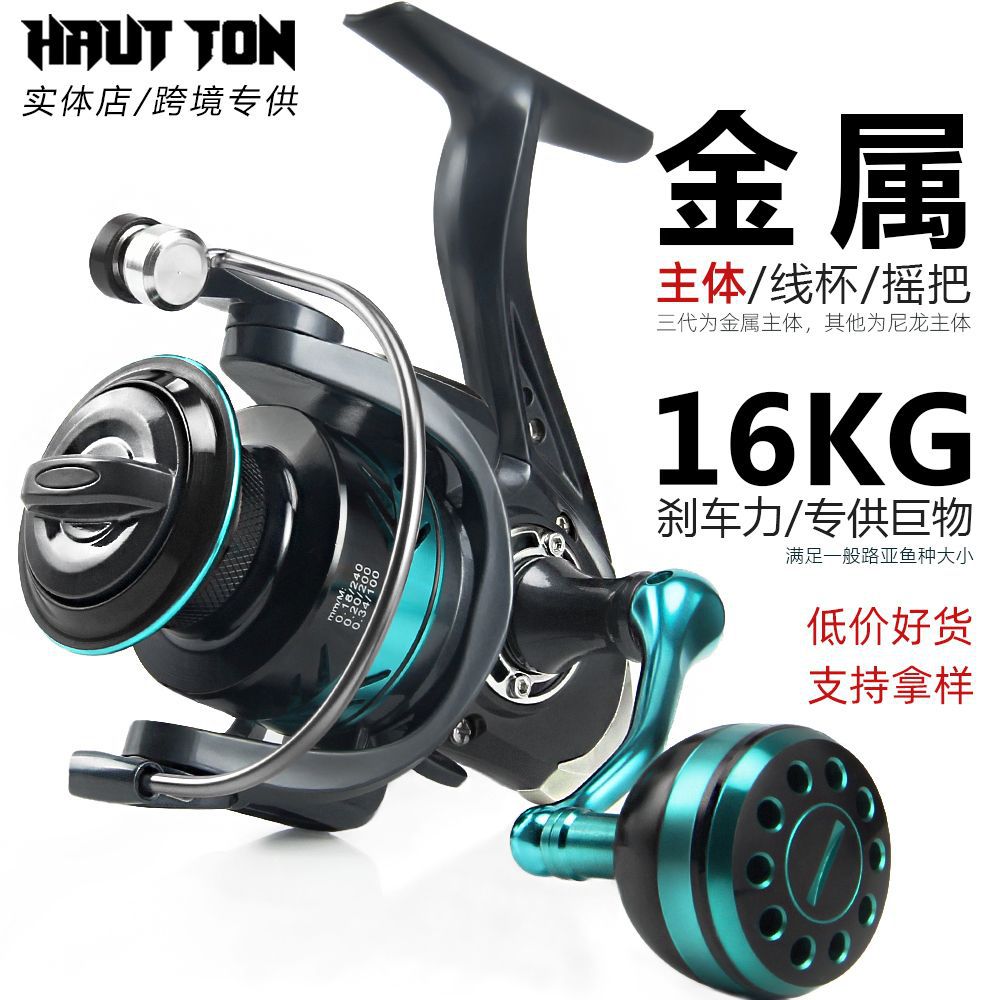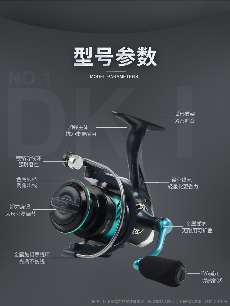بكرة صيد معدنية سوداء بالكامل، بكرة صيد صغيرة، بكرة صيد لقصبة الصيد البحرية، بكرة صيد كبيرة DK (سمكة وزنها 16 كجم)