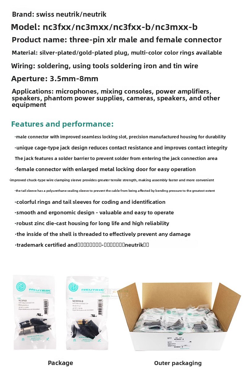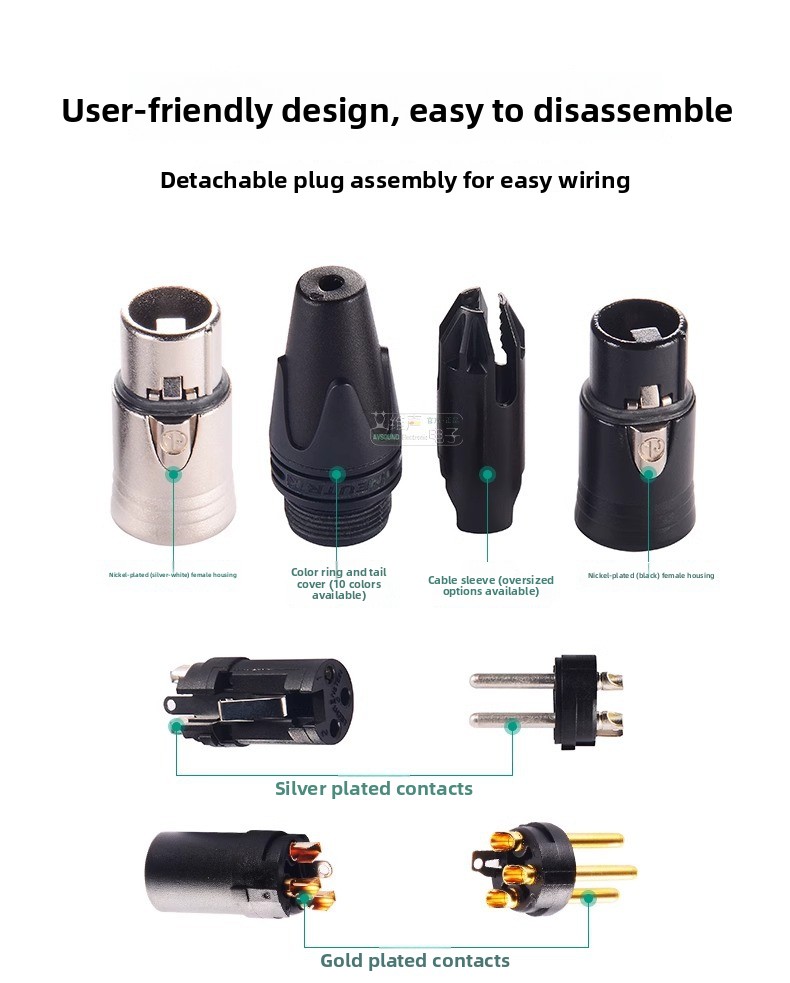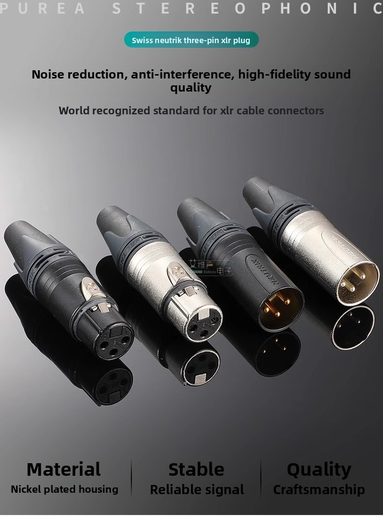 موصل صوت ثلاثي النواة من نوع XLR Kanon مطلي بالذهب من Youquek، ذكر وأنثى من نوع Canon NC3MXX/F