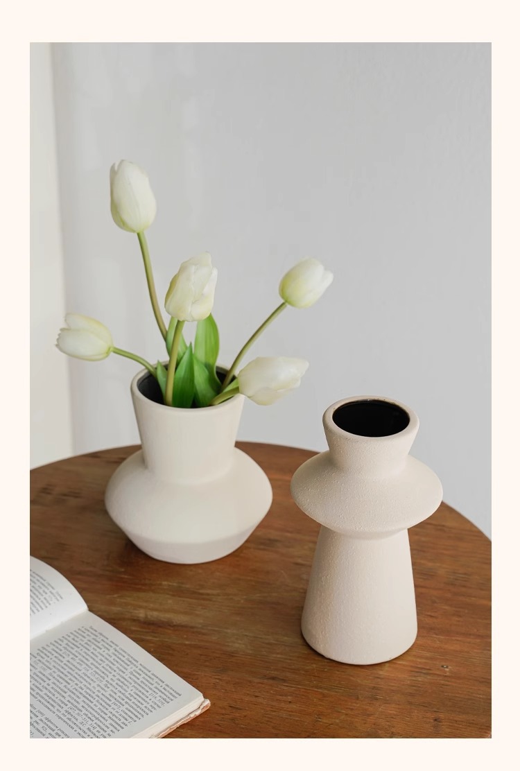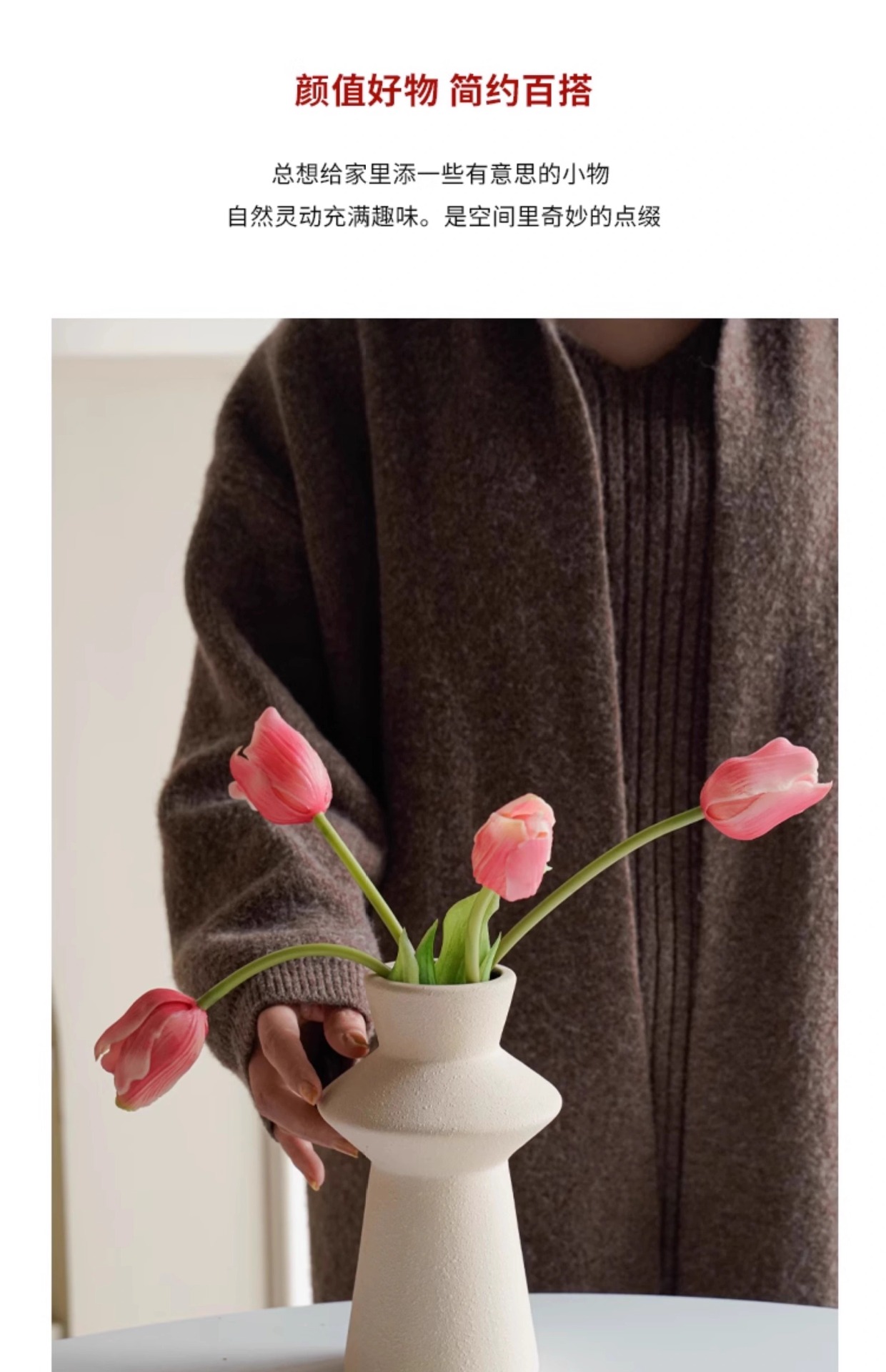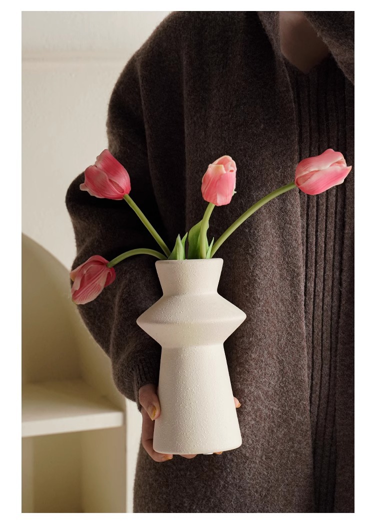 A ins Cream Wind Tulip Ceramic Vase Ornament Living Room Arrangement Dried Flowers Flowers White Porcelain Retro Lighthouse ins Wind