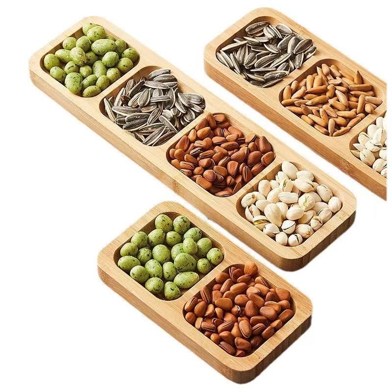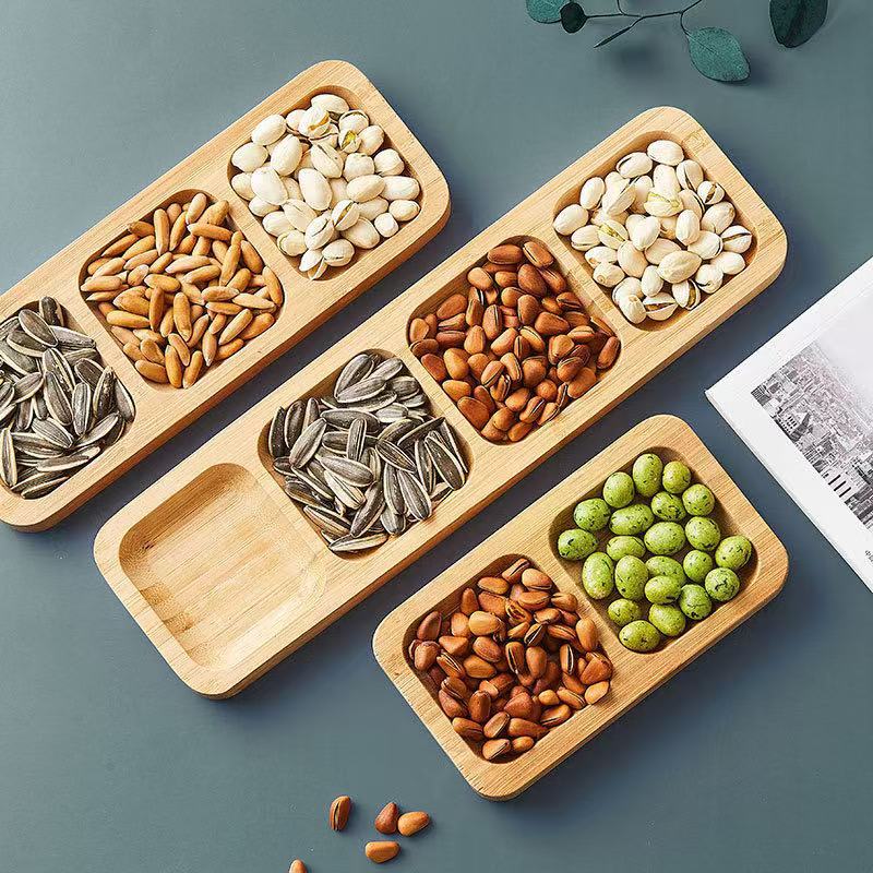 طبق فواكه مجففة على الطراز الياباني مصنوع من الخيزران والخشب
