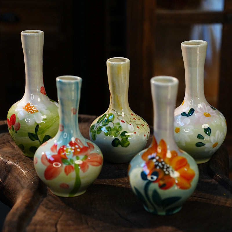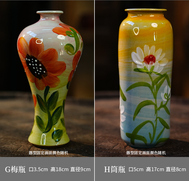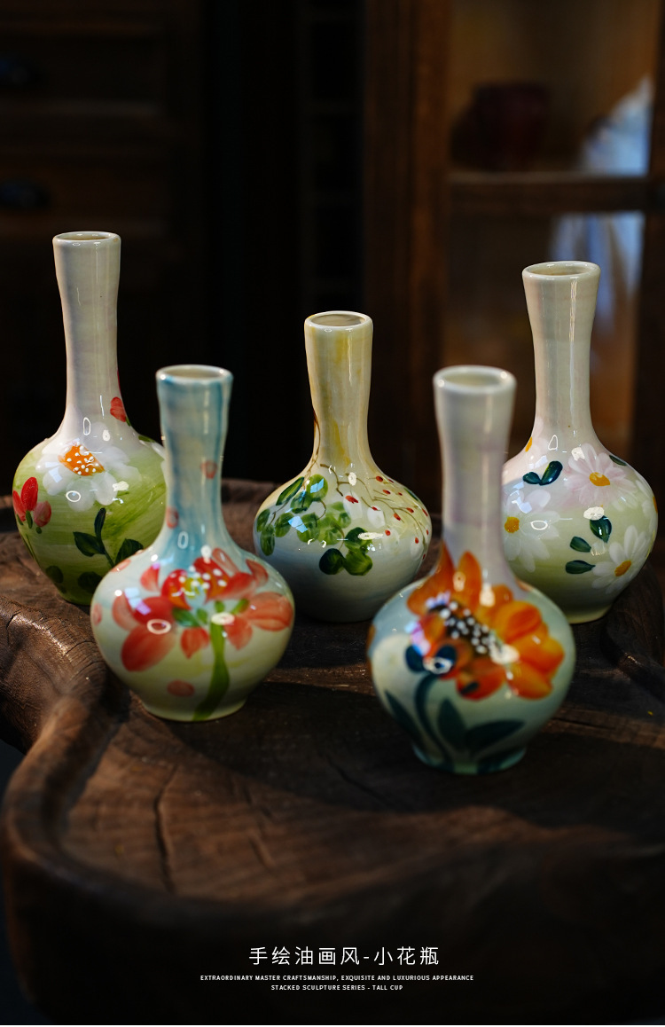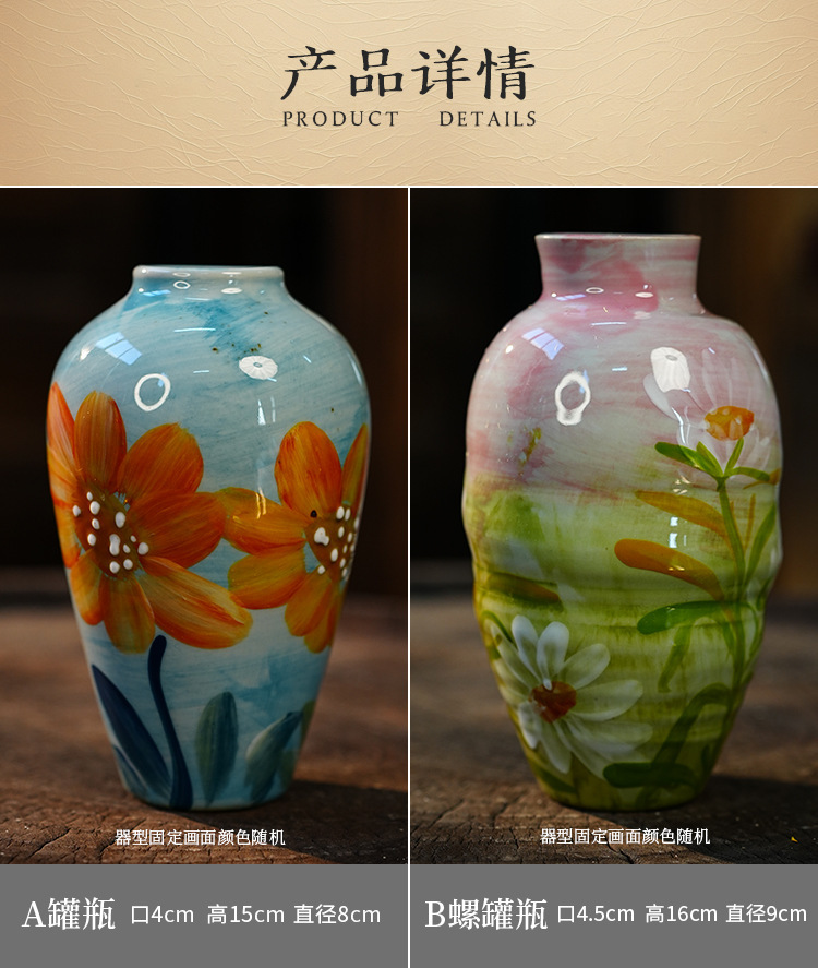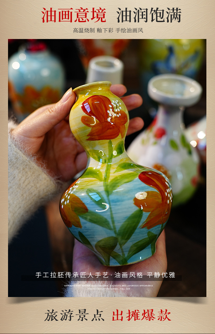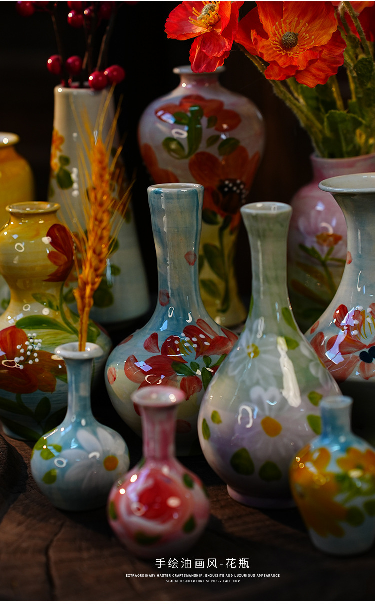 A Jingdezhen handmade oil painting vase dried flower home decoration TV cabinet ornament wine cabinet TV cabinet ceramic flower device
