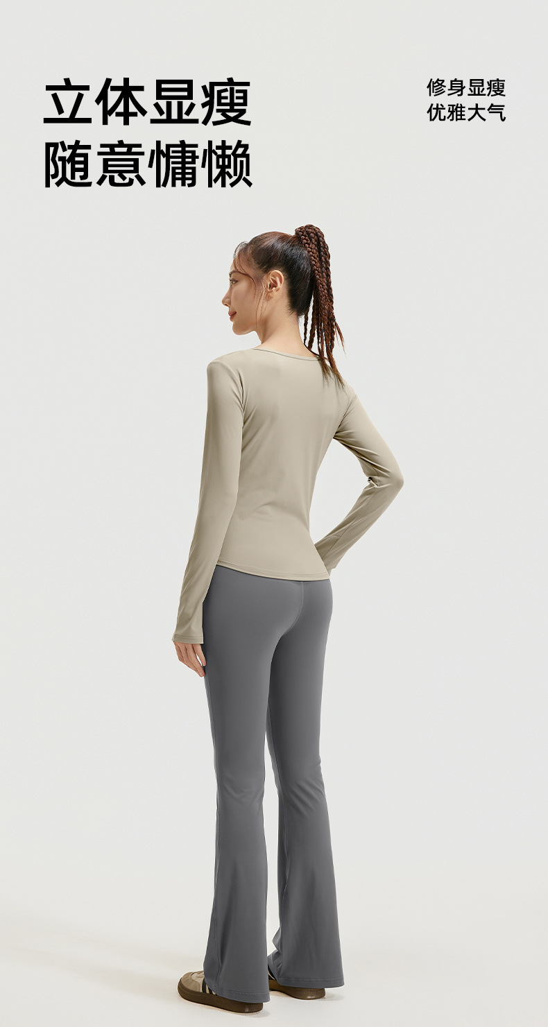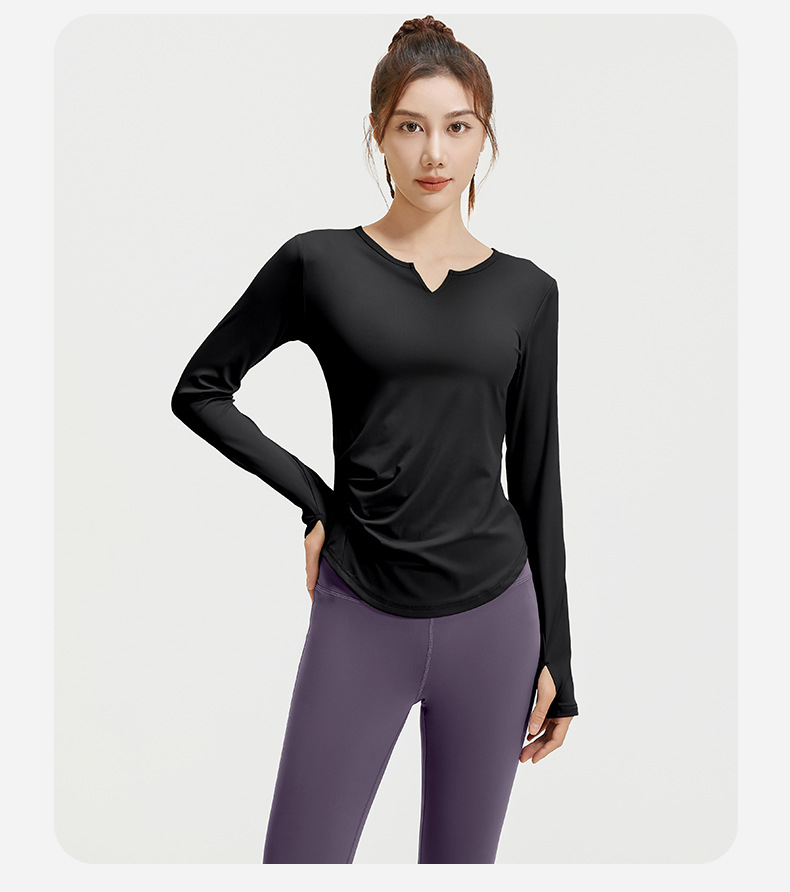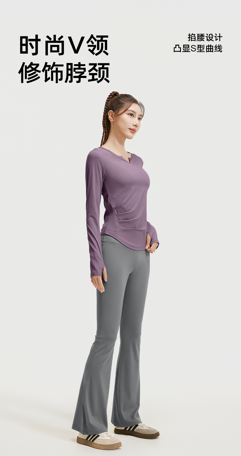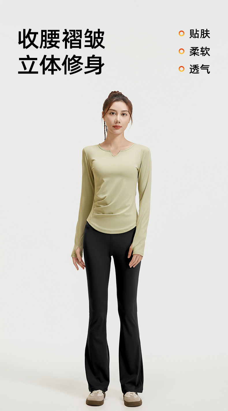A autumn v-neck yoga suit pleated naked feeling slim and thin long fitness suit women