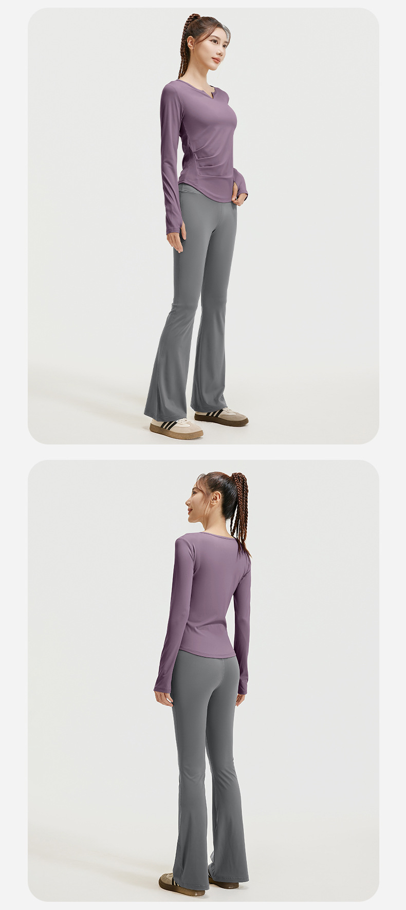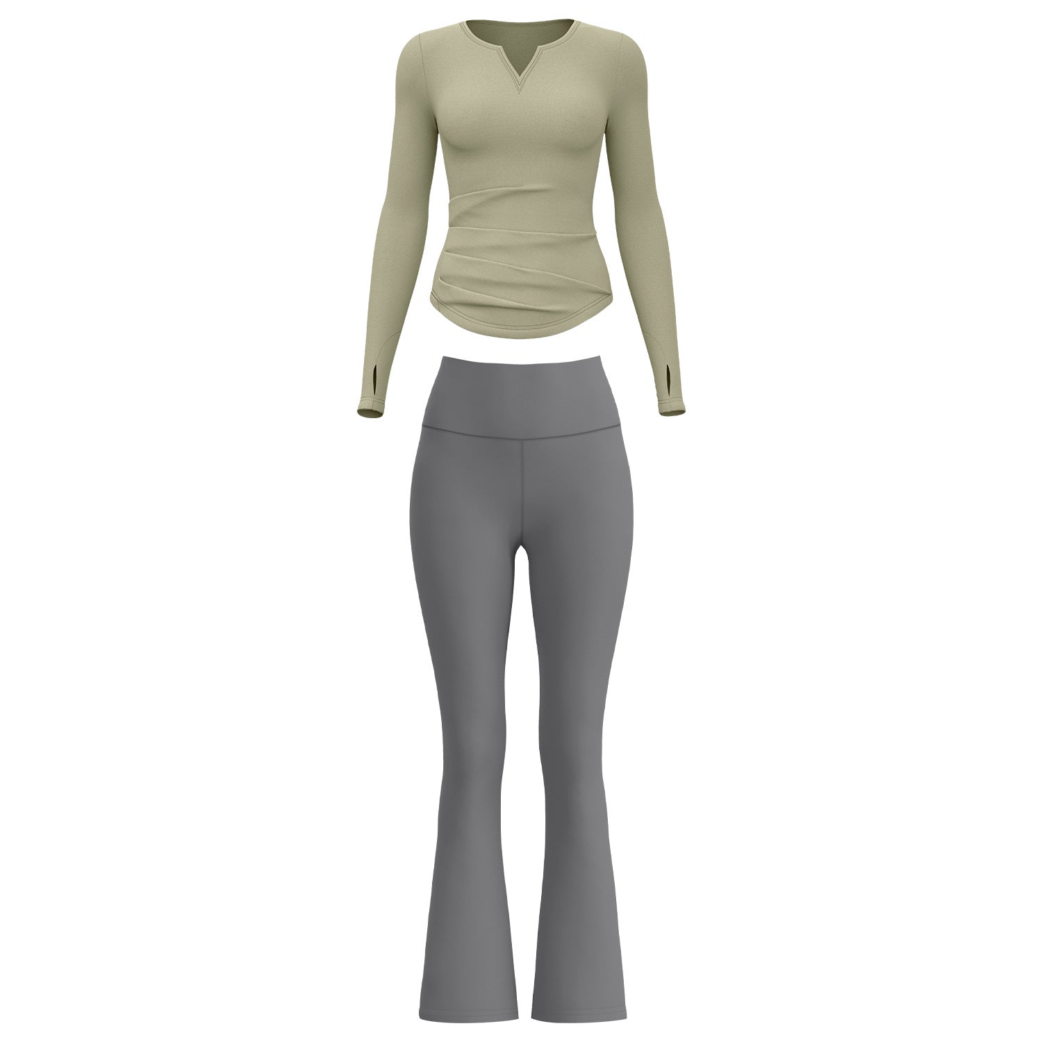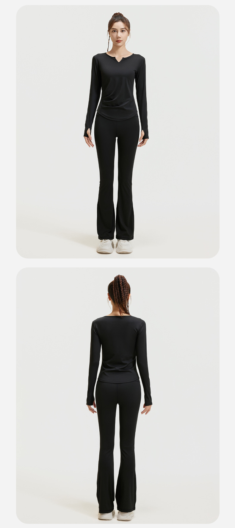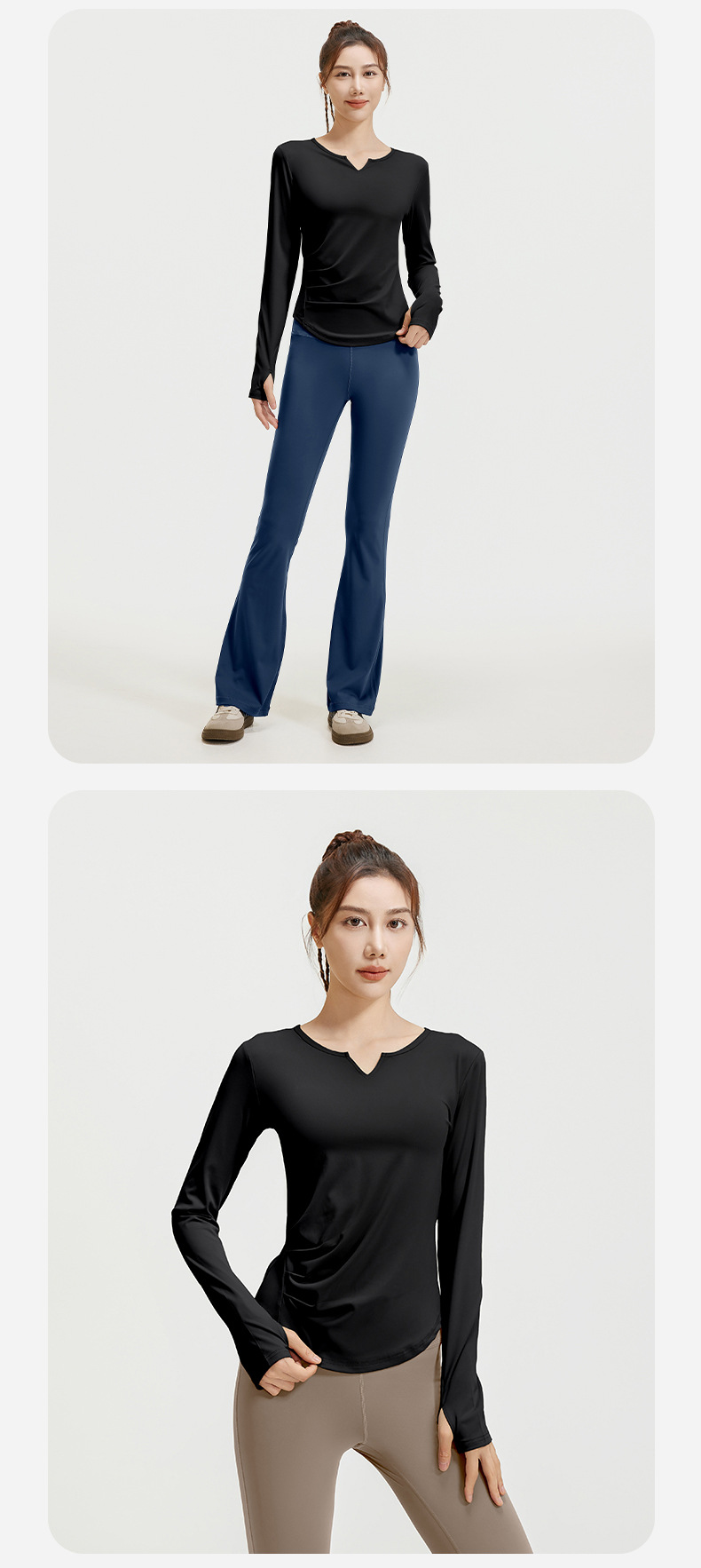 A autumn v-neck yoga suit pleated naked feeling slim and thin long fitness suit women