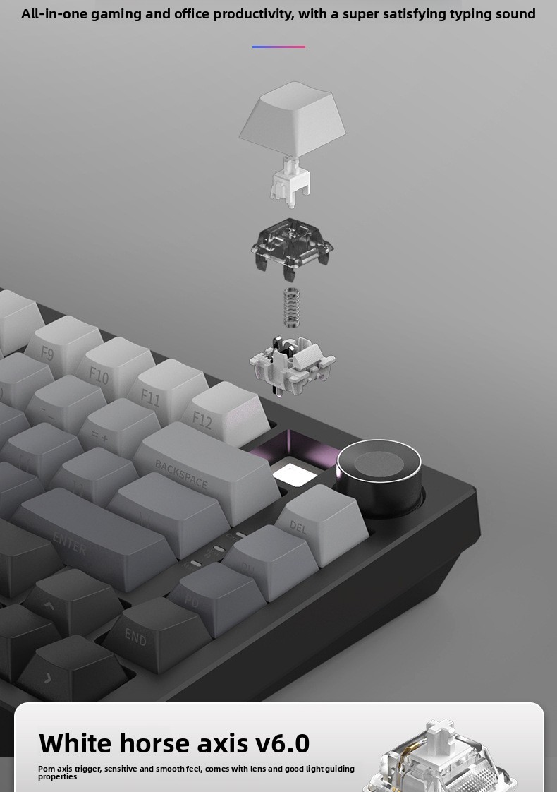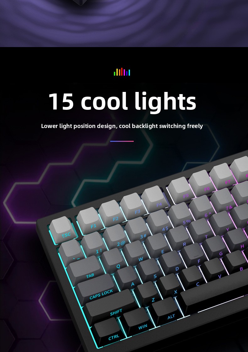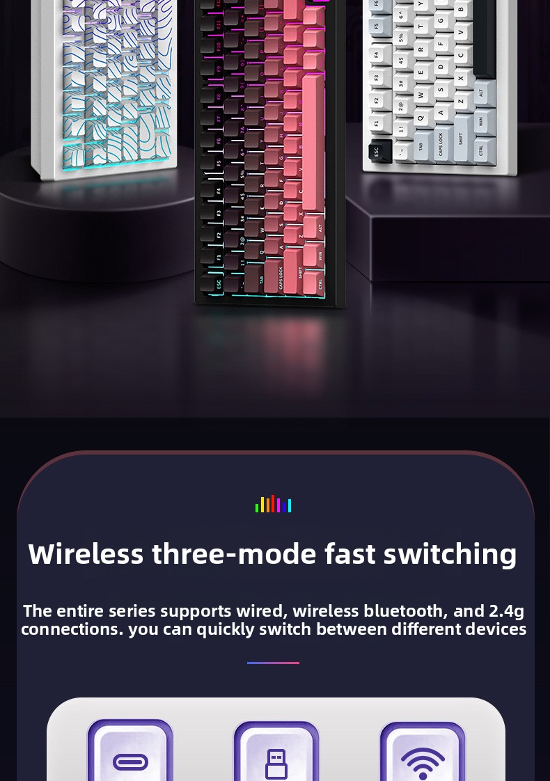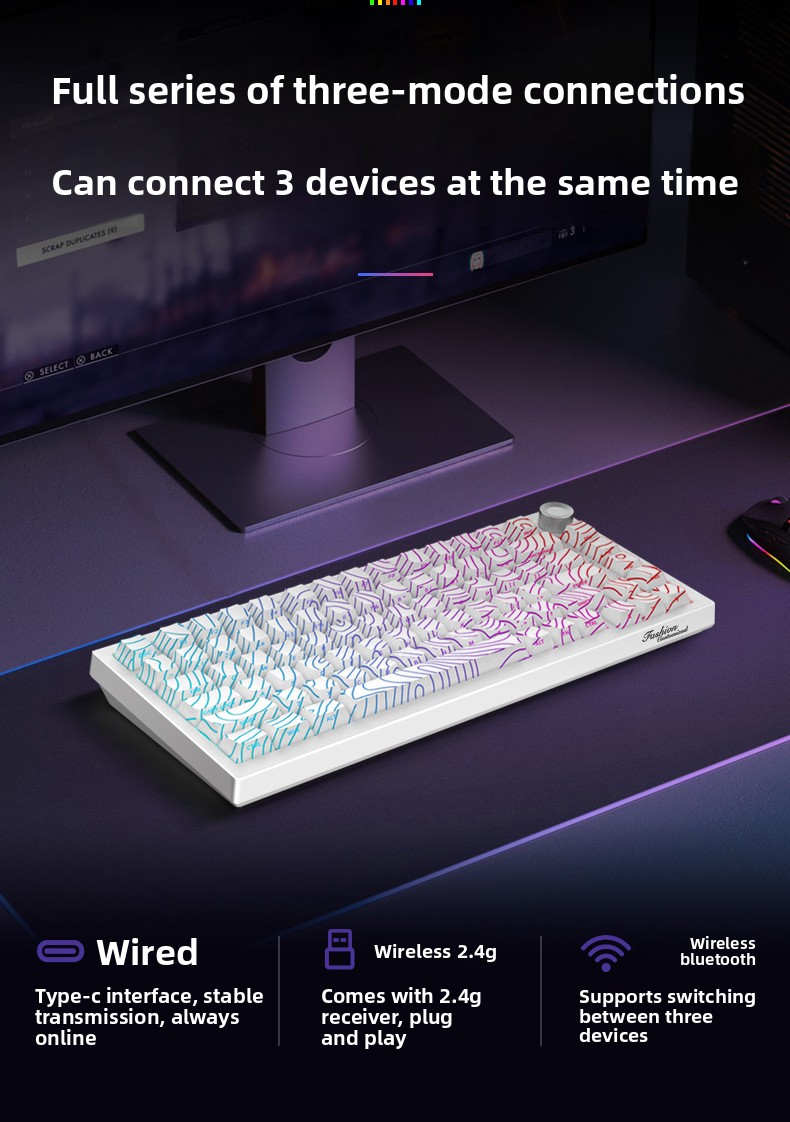 A three-mode mechanical keyboard is engraved with wireless Bluetooth