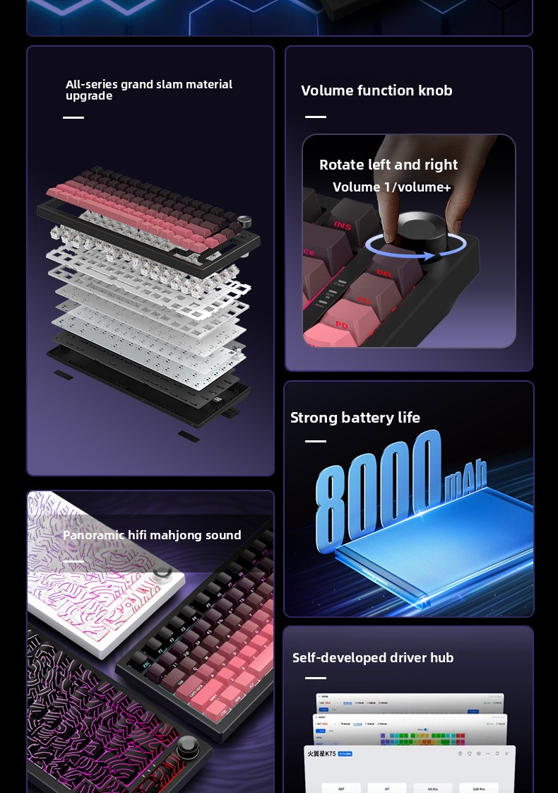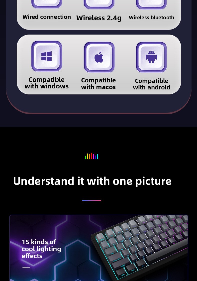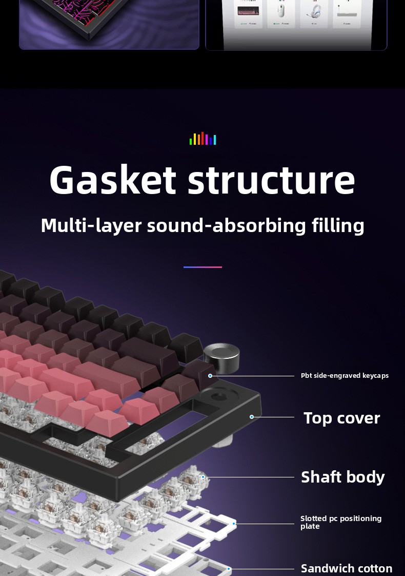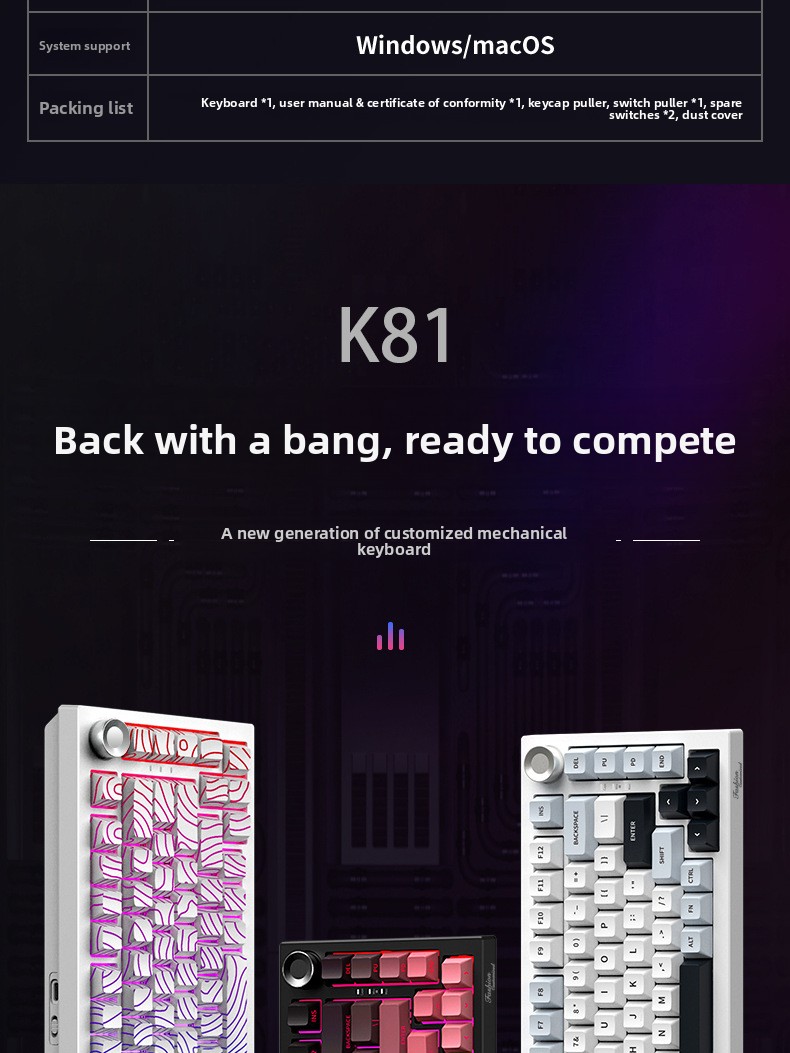 A three-mode mechanical keyboard is engraved with wireless Bluetooth
