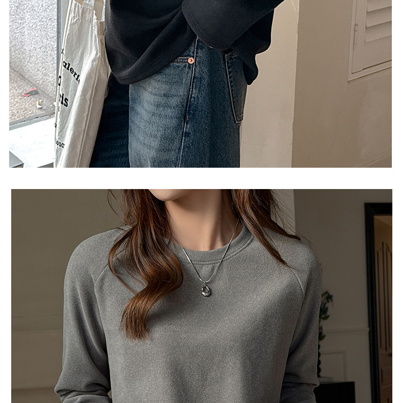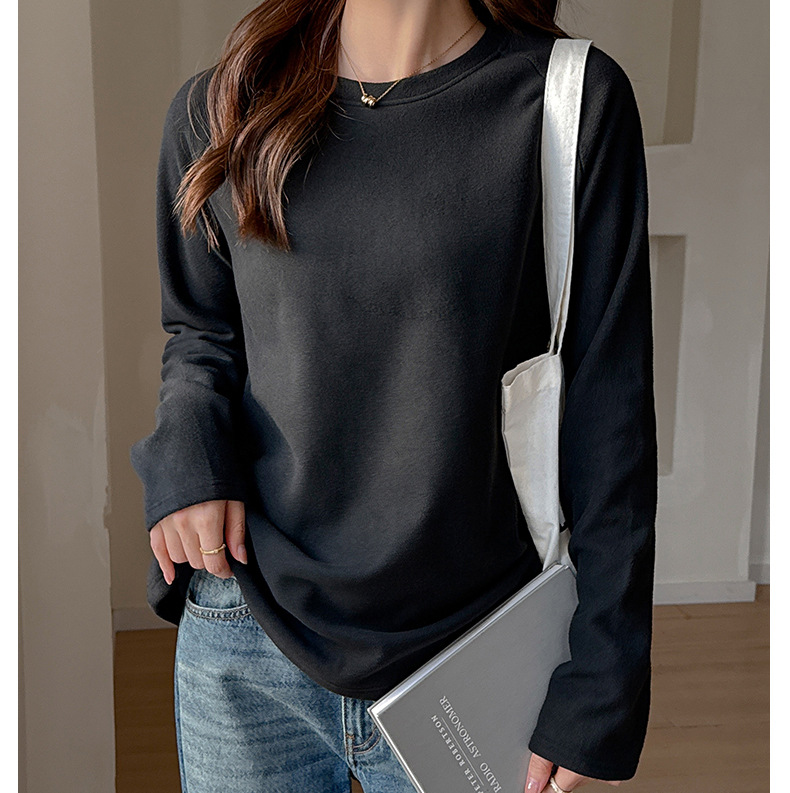 A crewneck long-sleeved top