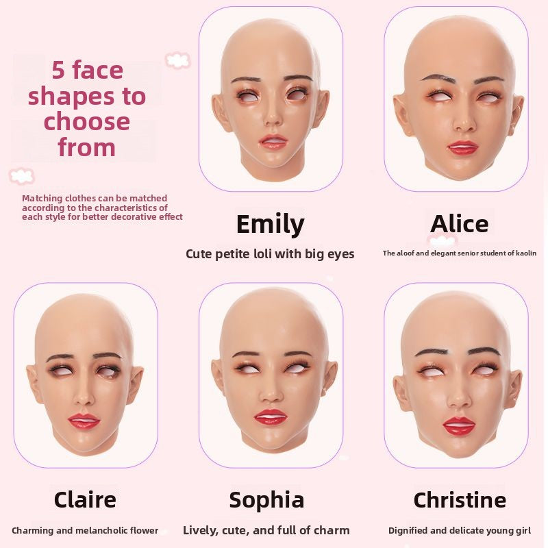 A art face silicone headgear full face cos simulation male to beautiful woman boss CD cross-dressing fake girl head makeup mask