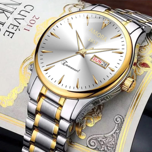 A business waterproof automatic quartz watch luminous double calendar movement men's Korean version fashion watch wholesale delivery