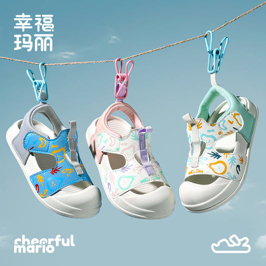 A Boys and Girls Martin Boots Soft-soled Strawberry Versatile Leather Boots