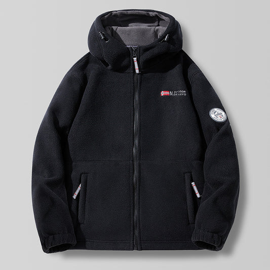 A Fall and Winter Outdoor Fleece Thickened Hooded Men's Fleece Jacket