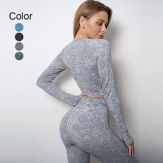 A new seamless yoga suit women's cross-border high-waisted hip-lifting yoga pants tie-dye long-sleeved top fitness sportswear set