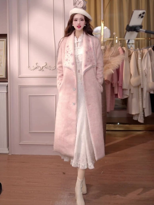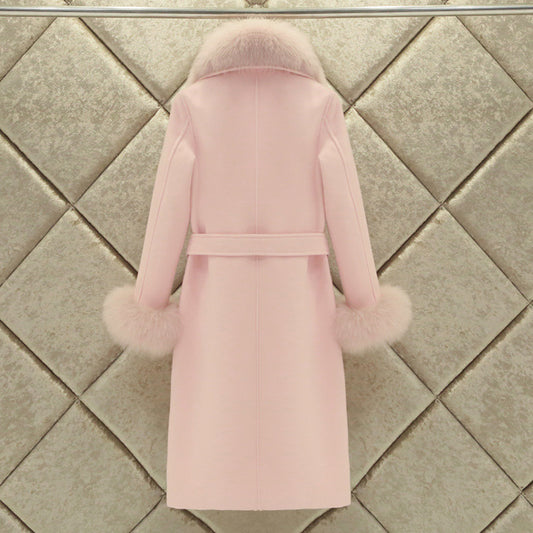 A woolen coat women's winter clothing new slim-fitting large fur collar lengthened thickened wool woolen coat