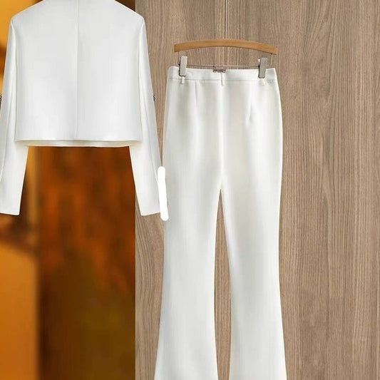 A Heavy Industry Bead Crew Neck Short Fashion Jacket Set Two-piece Premium