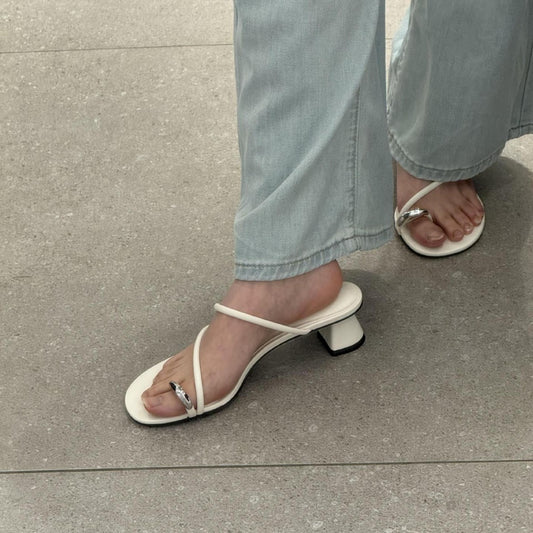 A sandals summer thin strap metal ring high heel toe sandals