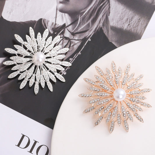 A hot-selling gold sunflower brooch creative diamond-encrusted pearl versatile temperament brooch blazer collar pin with accessories