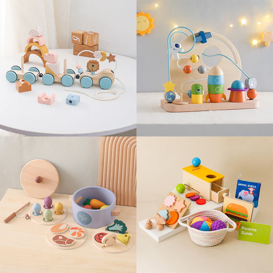 A Baby Early Education Educational Wooden Toys Montessori Teaching Multifunctional Hands-on Brain Shape Cognition Set