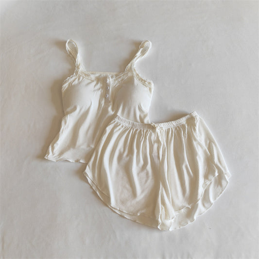 A Modal pajamas women's spring, autumn and winter sexy with chest pads, summer suspenders, trousers can be worn outside, simple loungewear cover