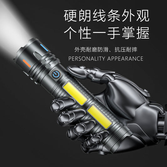 A new dual light source strong light flashlight long-range white laser COB charging digital display super bright aluminum alloy flashlight