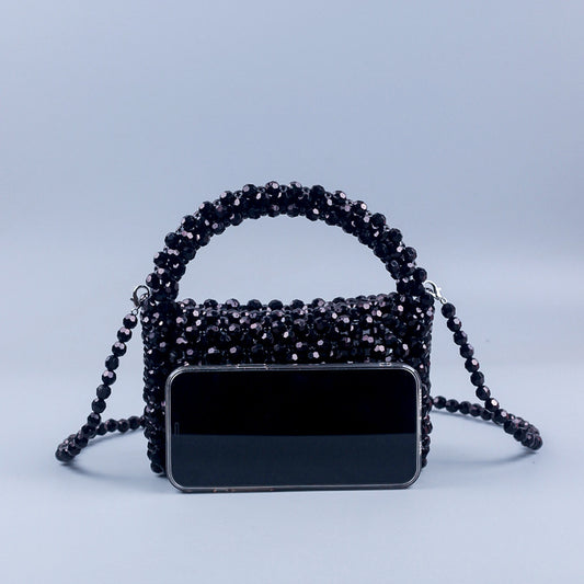 A simple black horn bead acrylic handbag bag handmade beaded woven portable messenger bag