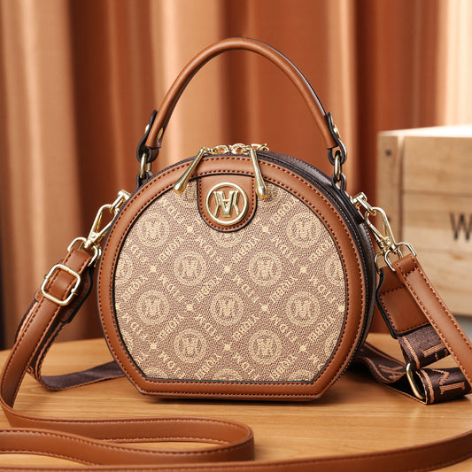 A new women's bag pu printed casual shoulder bag portable round cake bag women's bag