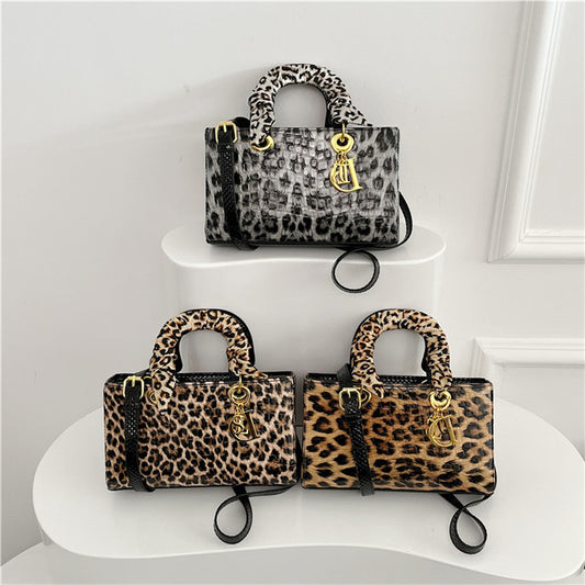 A retro stone pattern Princess Diana bag popular in Europe and America, leopard print handheld women's bag texture versatile single shoulder messenger bag foreign trade