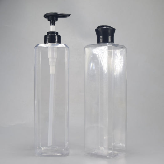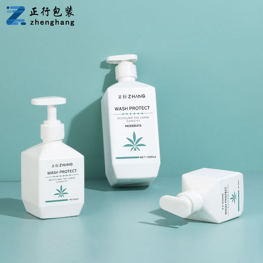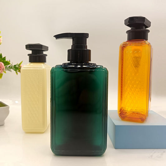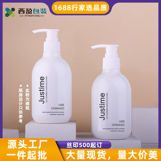A 200ml flat shoulder bottle 24 mouths with L09 all-plastic pump head, shampoo conditioner empty bottle