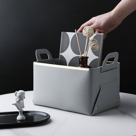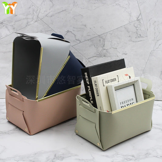 A Nordic desktop PU leather storage basket Foldable Phnom Penh sundries storage basket Stationery storage tray