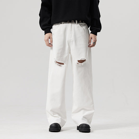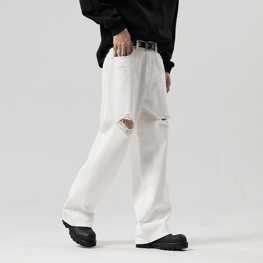 A straight white ripped jeans fashion trendy long pants