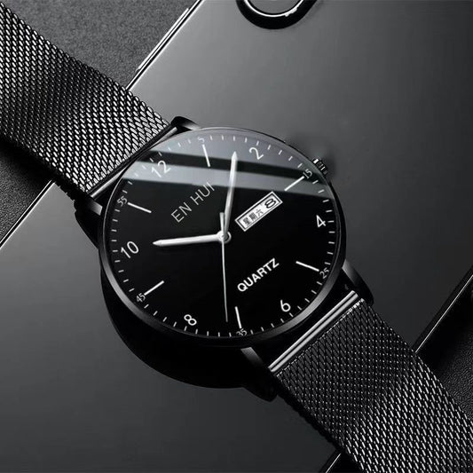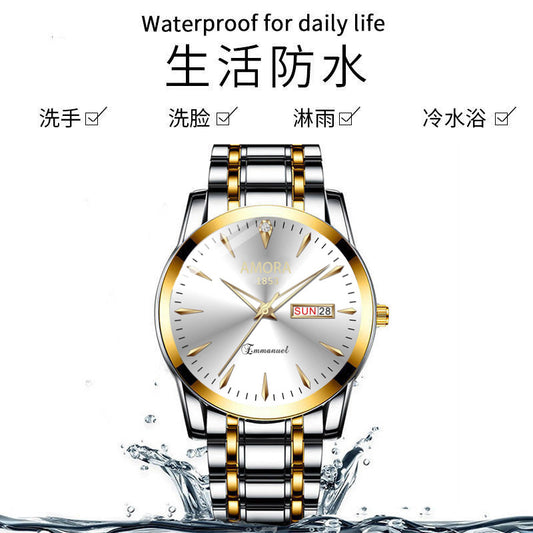A new quartz watch men's double calendar automatic waterproof luminous business steel belt watch