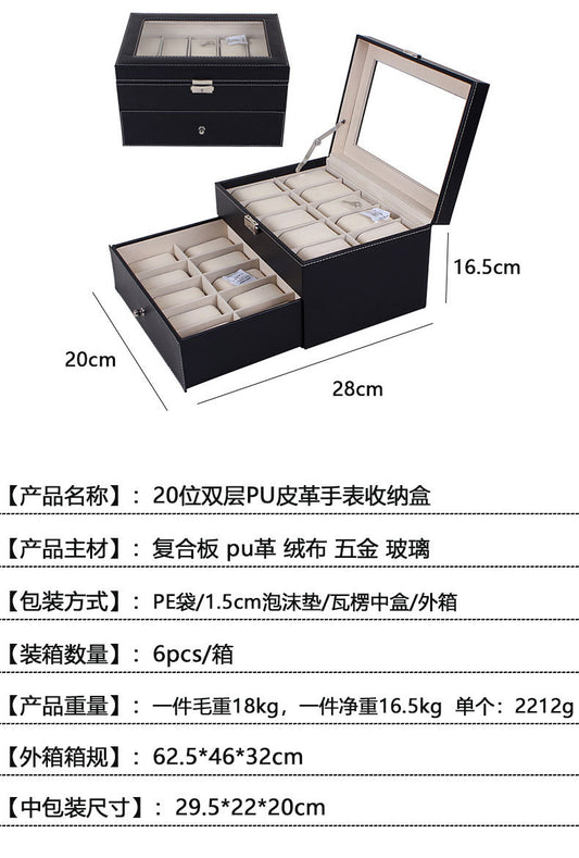 A Cross-border watch box spot wholesale pu leather 20-bit 24-bit watch storage box