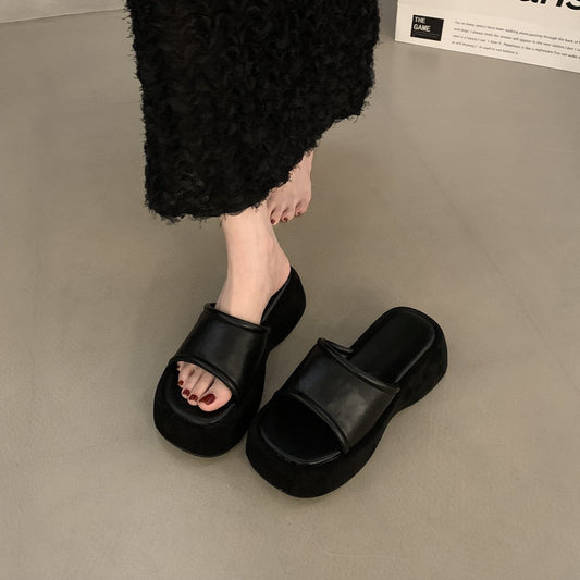 A Open-toed Square Head Flat Bottom Women's Summer Slippers