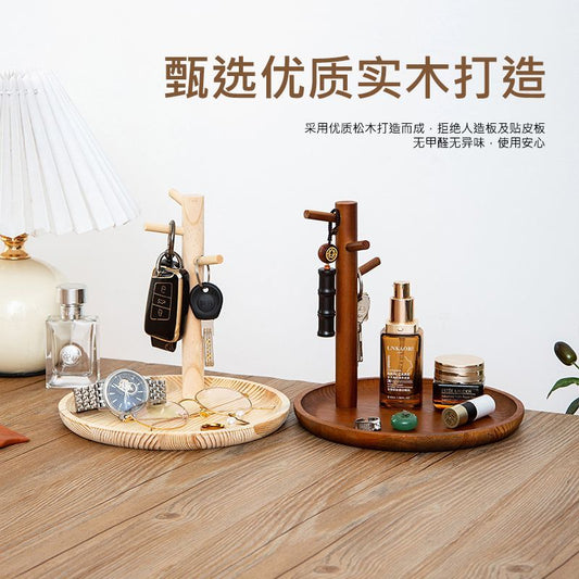 P Solid wood glass tray Small household rectangular walnut solid wood cup storage Fruit living room coffee table Tea snack plate