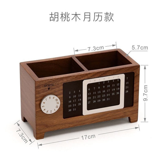 P walnut perpetual calendar pen holder multi-grid new creative multi-functional office stationery desktop storage box partition