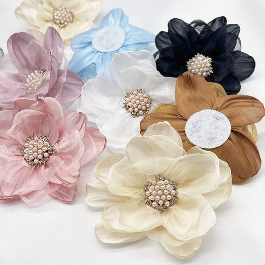 A organza flower accessories multi-layer three-dimensional gauze handmade beads DIY burnt edge flower jewelry shoe flower accessories