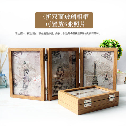 A three-fold wooden photo frame photo frame table 7-inch 8-inch double-sided folding photo frame literary picture frame