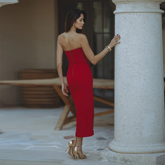 D088DS European and American cross-border 2025 spring tube top fake two-piece sleeveless chest-wrapped casual high-split splicing dress